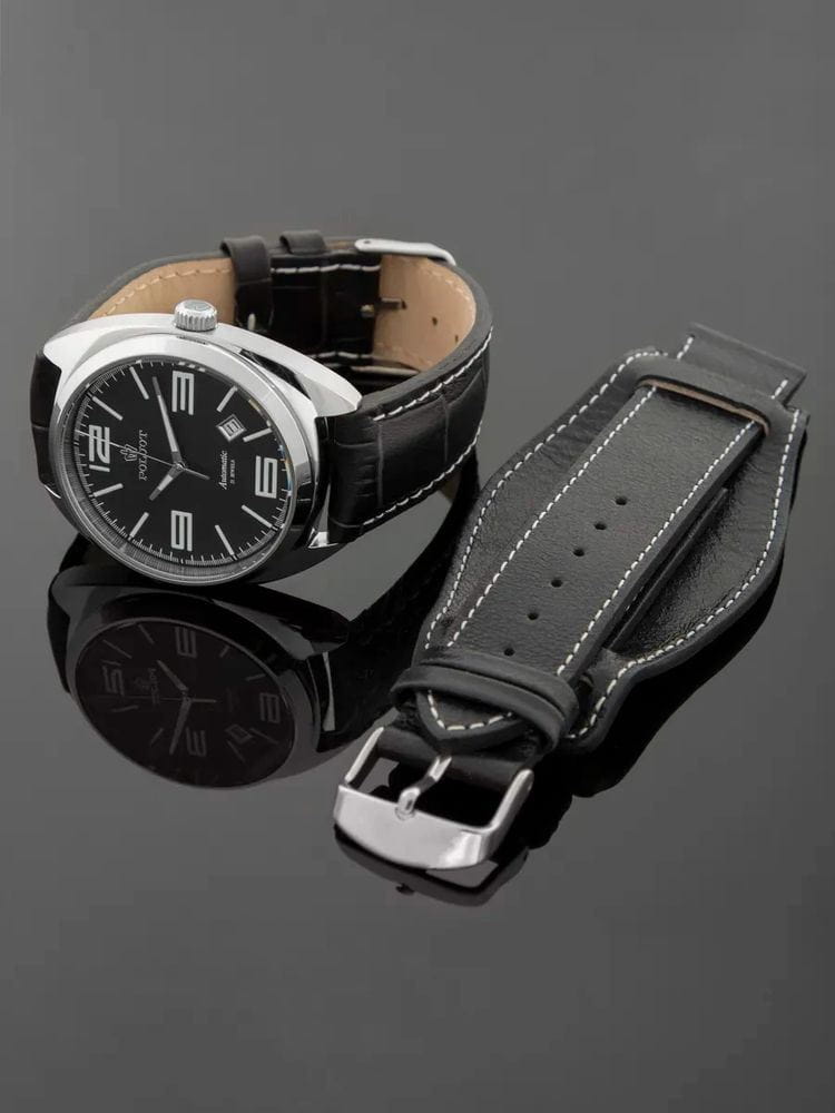 Poljot 8215.241270 — элегантные механические часы с автоподзаводом, сочетающем силу и изысканность. Корпус из нержавеющей стали подчеркивает надёжность и лаконичность дизайна, а глубокий циферблат с серебристыми стрелками и крупными арабскими цифрами придаёт модели благородный акцент. Проверенный японский механизм Miyota 8215 обеспечивает точность хода и долговечность, а плавное движение секундной стрелки подчёркивает качество сборки. Метки и стрелки с люминесцентным покрытиемЛюминесцентное покрытиеПозволяет считывать показания времени в темноте. Производители наносят на стрелки, часовые индексы, безель или поверхность циферблата светонакопительный состав, дающий холодное свечение. обеспечивают отличную читаемость при любом освещении, а окно даты добавляет практичности. Прочное минеральное стеклоМинеральное стеклоМинеральное стекло представляет собой искусственно выращенный минерал кварца. Такое стекло отличается особой устойчивостью к повреждениям и царапинам. Уступает по некоторым качествам сапфировому стеклу. защищает циферблат от царапин, а ремешок из натуральной кожи в тон циферблату завершает утончённый облик модели. Poljot — гармония классики и современной механики, созданная для тех, кто ценит традиции и индивидуальность в каждой детали. В комплекте дополнительный ремешок с напульсником.