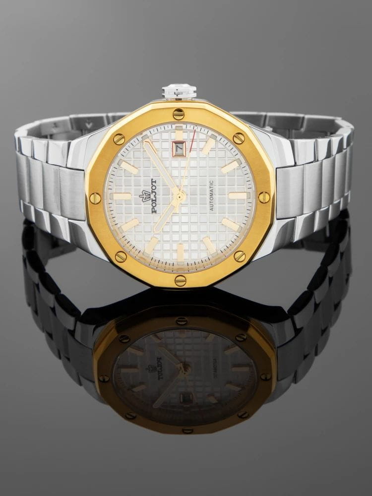 Poljot Ural 8215.365244Б — стильные механические часы с автоподзаводом, сочетающие брутальный характер и современную элегантность. Корпус выполнен из нержавеющей стали, что придаёт модели монолитность и прочность, а глубокий циферблат подчеркивает премиальный облик. Стальной браслет на застёжке-бабочке с кнопкамиЗастёжка "бабочка"Такой вид застёжки дополняется предохранителями, помогающими избежать случайного раскрытия браслета. Обладают изящным исполнением. . БезельБезельВнешний ободок, закрепляющий стекло. В спортивных часах так называется поворотное кольцо с делениями на циферблате, выполняет роль таймера – замеряет отрезки времени на шкале. Неподвижный безель – элемент декора. Однонаправленно вращающийся безель на дайверских часах позволяет фиксировать моменты погружения и выныривания на поверхность. с PVD-покрытиемPVDУльтратонкое покрытие наносится в технике вакуумного напыления, сочетает в себе нитрид титана особой прочности со слоем золота или оксида хрома. Несёт в себе декоративную или защитную функцию.. Внутри установлен надёжный японский механизм Miyota 8215, обеспечивающий точный ход и плавную работу стрелок. Широкие метки и стрелки с люминесцентным покрытиемЛюминесцентное покрытиеПозволяет считывать показания времени в темноте. Производители наносят на стрелки, часовые индексы, безель или поверхность циферблата светонакопительный состав, дающий холодное свечение. гарантируют превосходную читаемость в любое время суток, а окно даты добавляет удобства. Прочное минеральное стеклоМинеральное стеклоМинеральное стекло представляет собой искусственно выращенный минерал кварца. Такое стекло отличается особой устойчивостью к повреждениям и царапинам. Уступает по некоторым качествам сапфировому стеклу. защищает циферблат от повреждений, а водонепроницаемость до 10 бар делает часы надёжным спутником как в деловом, так и активном образе жизни. Poljot Ural — воплощение силы, точности и мужского стиля, созданное для тех, кто ценит механику и уверенность в каждой детали.