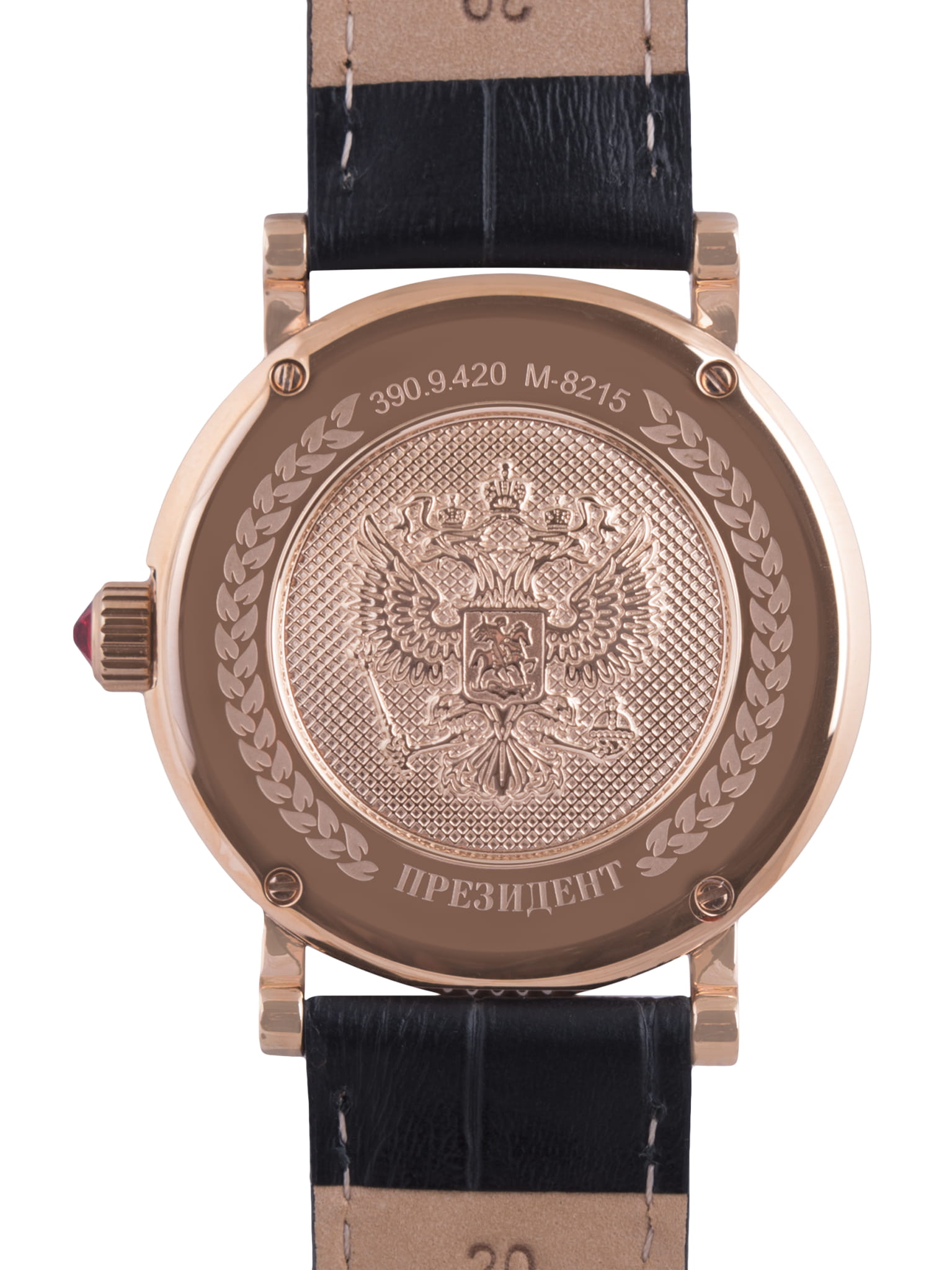 Часы «Президент» модели 3909420 — это элегантные мужские механические наручные часы с автоподзаводом, сочетающие классический дизайн и высокое качество исполнения. Механизм: японский механизм Miyota 8215 с автоподзаводом, обеспечивающий точность и надёжность. Функции: часы, минуты, секунды и дата. Корпус: из нержавеющей стали с PVD-покрытиемPVDУльтратонкое покрытие наносится в технике вакуумного напыления, сочетает в себе нитрид титана особой прочности со слоем золота или оксида хрома. Несёт в себе декоративную или защитную функцию. цвета розового золота, диаметром 38,4 мм и толщиной 12 мм. Циферблат: светлый с перламутровыми вставками, украшен кристаллами Swarovski и изображением государственного герба России. Стекло: сапфировоеСапфировое стеклоПрочный и надёжный материал из кристалла сапфира синтетического происхождения, характеризующийся особой твёрдостью и устойчивостью к царапинам и повреждениям., устойчивое к царапинам. Водонепроницаемость: 3 ATM (30 метров), защищает от случайных брызг и дождя. Ремешок: кожаный, шириной 20 мм, с классической застёжкой. Эти часы станут отличным выбором для ценителей стиля, качества и утончённого дизайна.