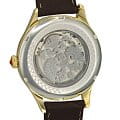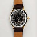 Часы «Президент» модели 6456045 — это мужские механические наручные часы с автоподзаводом, сочетающие изысканный дизайн и высокую функциональность. Механизм: японский механизм Miyota 8215 с автоподзаводом, обеспечивающий точность и долговечность. Функции: часы, минуты, секунды, дата. Корпус: из нержавеющей стали с PVD-покрытиемPVDУльтратонкое покрытие наносится в технике вакуумного напыления, сочетает в себе нитрид титана особой прочности со слоем золота или оксида хрома. Несёт в себе декоративную или защитную функцию. цвета жёлтого золота, диаметром 43 мм. Циферблат: чёрный с римскими цифрами и изображением государственного герба России, подчёркивающий статусность модели. Стекло: минеральноеМинеральное стеклоМинеральное стекло представляет собой искусственно выращенный минерал кварца. Такое стекло отличается особой устойчивостью к повреждениям и царапинам. Уступает по некоторым качествам сапфировому стеклу., устойчивое к царапинам. Водонепроницаемость: 3 ATM (30 метров), защищает от случайных брызг и дождя. Ремешок: из натуральной кожи чёрного цвета, обеспечивающий комфорт при ношении. Эти часы идеально подойдут для деловых людей, ценящих стиль, надёжность и точность механического хода.