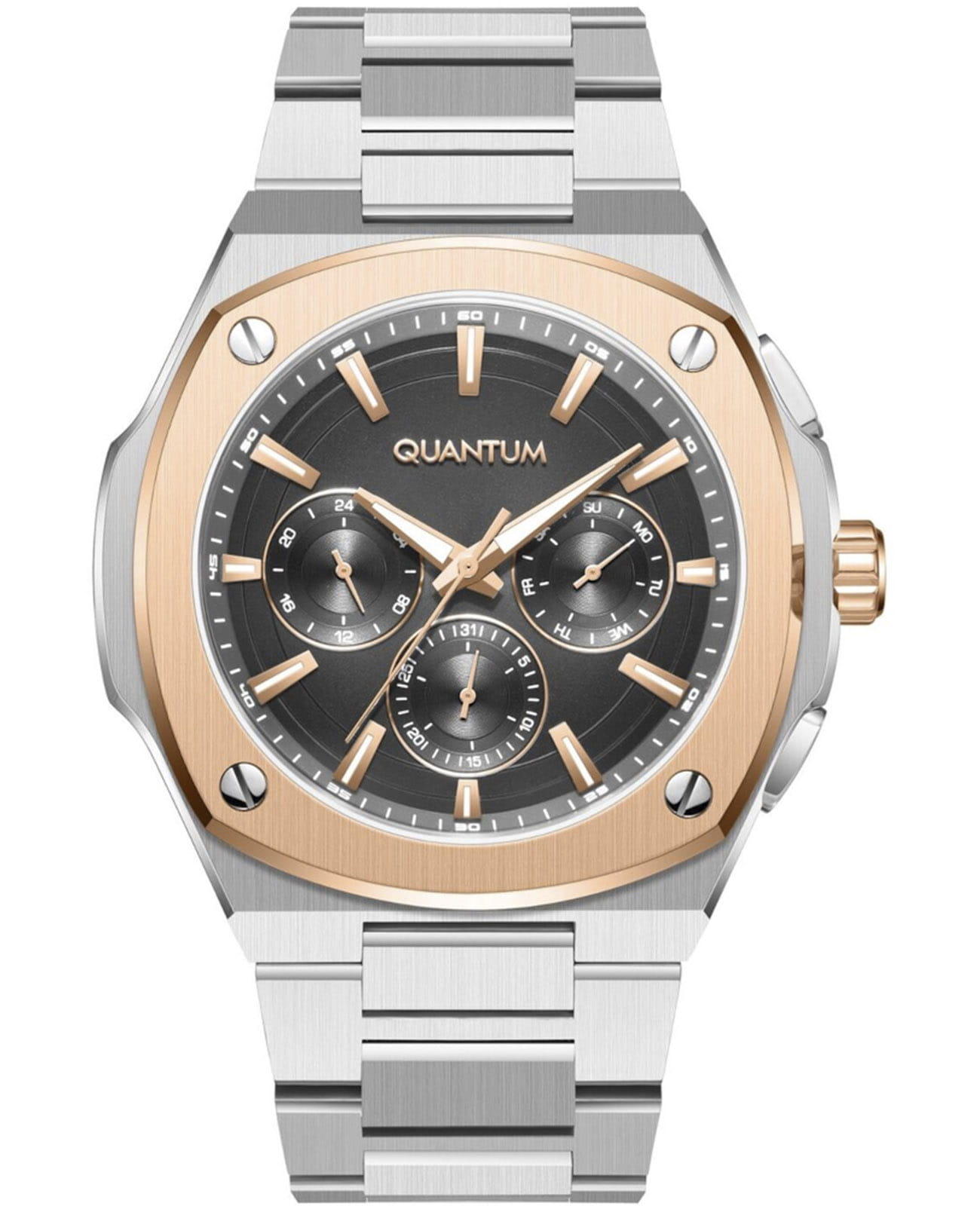 Quantum ADG1032.560 — это наручные часы, сочетающие в себе стиль, точность и надёжность. Модель выполнена в круглой форме из нержавеющей стали с минеральным стекломМинеральное стеклоМинеральное стекло представляет собой искусственно выращенный минерал кварца. Такое стекло отличается особой устойчивостью к повреждениям и царапинам. Уступает по некоторым качествам сапфировому стеклу., устойчивым к мелким повреждениям. Циферблат чёрного цвета оформлен штриховыми метками и оснащён функцией отображения даты, что делает его удобным для повседневного использования. Часы оснащены кварцевым механизмом, обеспечивающим высокую точность хода и минимальное обслуживание. Водонепроницаемость позволяет использовать их при плавании и других водных активностях без глубокого погружения. Стильная конструкция и универсальный дизайн делают модель подходящей для любого образа — от делового до неформального. Эти часы станут идеальным аксессуаром для тех, кто ценит сочетание элегантности, функциональности и надёжности — универсальное решение для повседневной носки и повседневных задач.