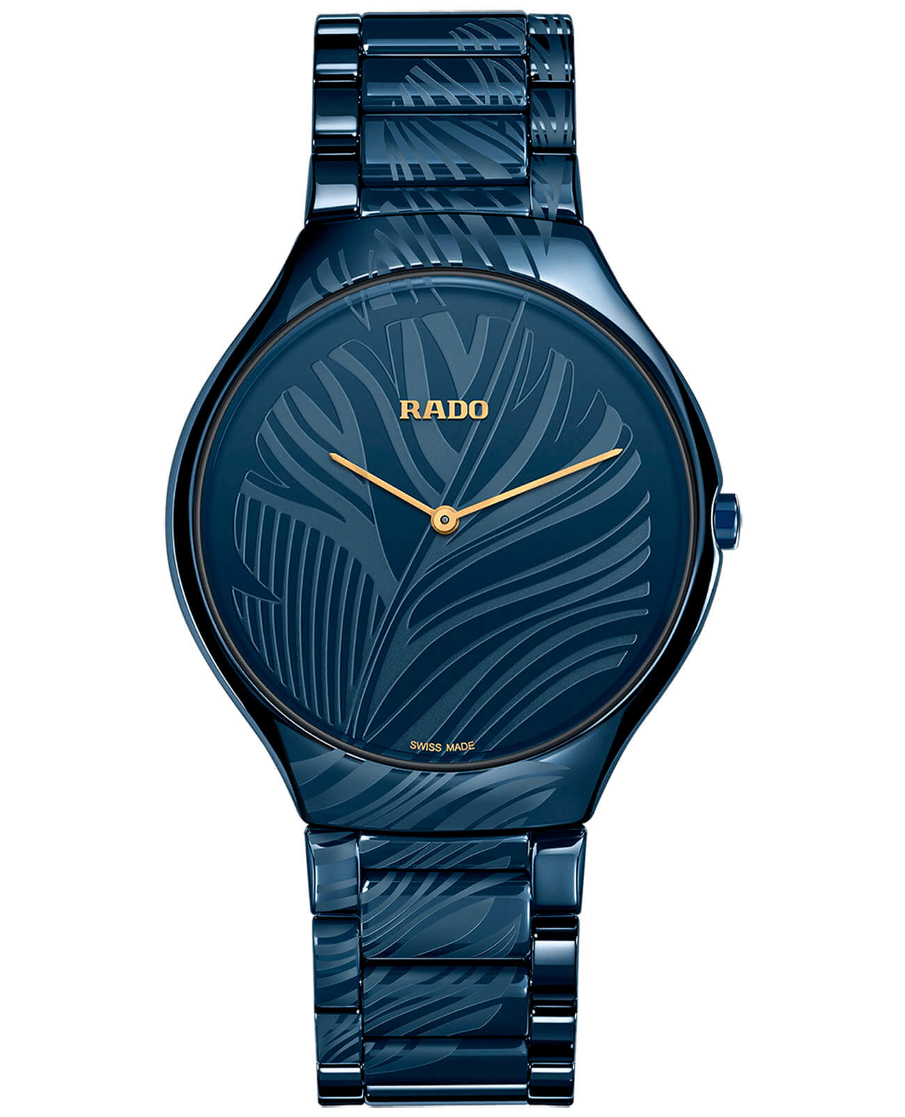 Оригинальный аксессуар в синем цвете привлекает «русскими мотивами»: задняя крышка украшена цветным изображением Жар-Птицы, а корпус, циферблат и браслет из высокотехнологичной керамикиВысокотехнологичная керамикаИнновационный запатентованный Rado материал с гладкой или матовой поверхностью. Керамика за счёт кристаллической структуры обладает повышенной устойчивостью от возникновения царапин. Материал способен принимать температуру тела человека, обеспечивая невероятный комфорт при ношении. декорированы узором в виде птичьего пера. Кварцевый калибр ETA 282.002 с высокой точностью хода. Антибликовая обработка сапфирового стекла. Водонепроницаемость до 3 бар. . Диаметр корпуса: 39 мм.
