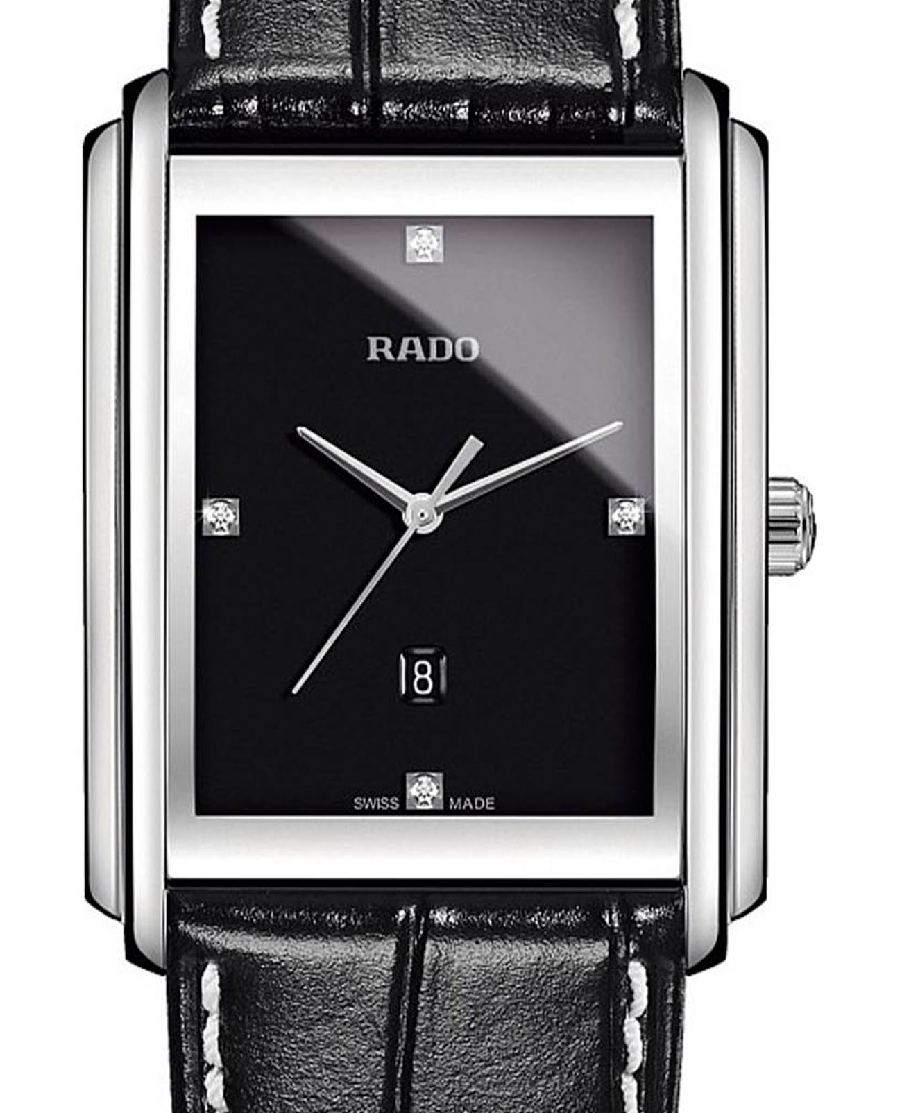 Женские часы Rado Integral Diamonds R20997715 с надёжным кварцевым механизмом. Сапфировое стеклоСапфировое стеклоПрочный и надёжный материал из кристалла сапфира синтетического происхождения, характеризующийся особой твёрдостью и устойчивостью к царапинам и повреждениям. устойчивое к мелким механическим повреждениям. Корпус выполнен из нержавеющей стали. Циферблат инкрустирован бриллиантами. Окошко даты находится в положении 6 часов. Класс водозащиты: 50 метров, позволит защитить корпус от случайных брызг или капель дождя. Кожаный ремешок на застёжке «бабочке» с кнопкамиЗастёжка "бабочка"Такой вид застёжки дополняется предохранителями, помогающими избежать случайного раскрытия браслета. Обладают изящным исполнением. . Бриллианты отмечают позиции 3, 6, 9 и 12 часов.