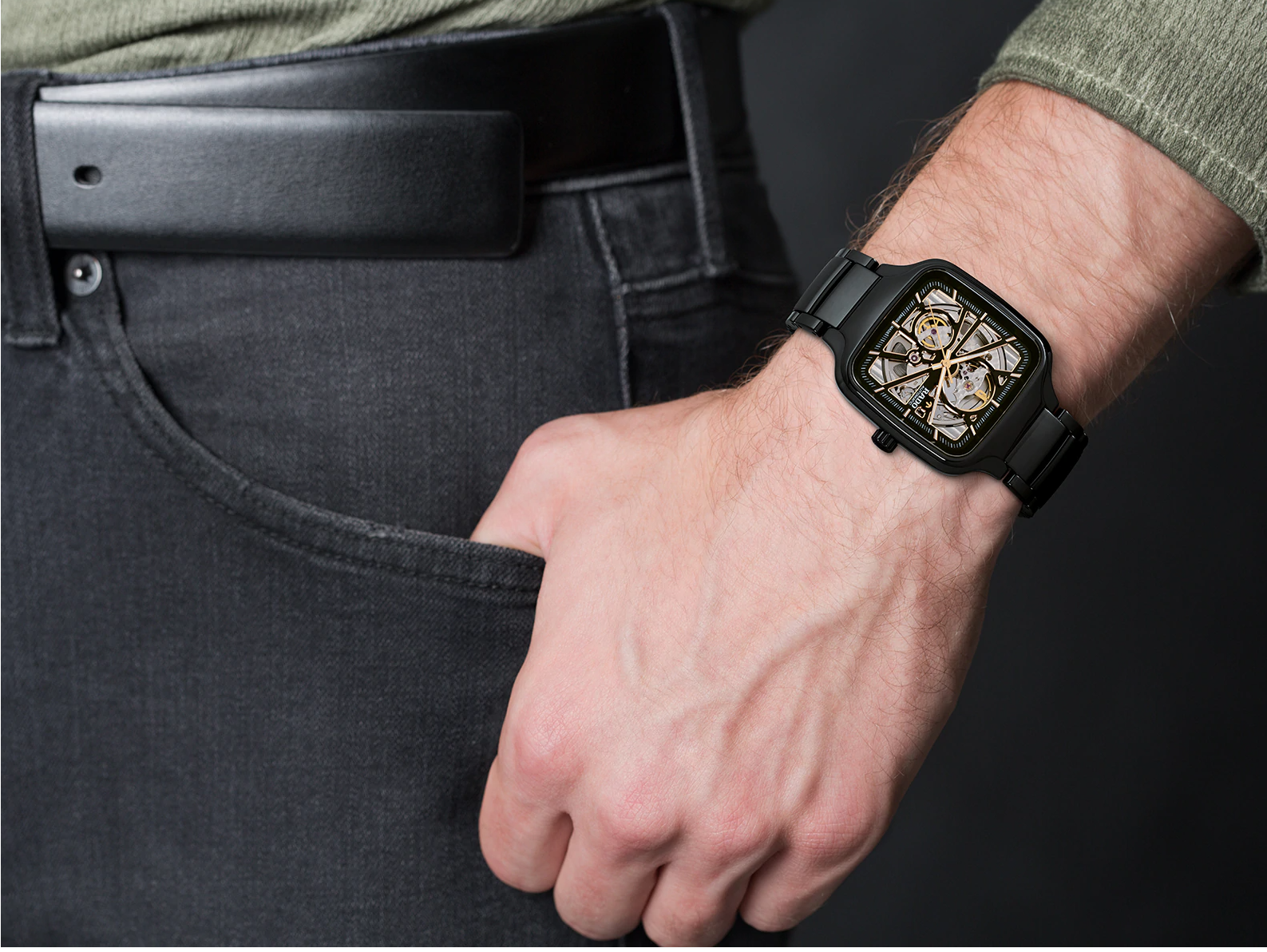 Швейцарские керамические мужские механические часы Rado True Square Automatic Open Heart R27086152