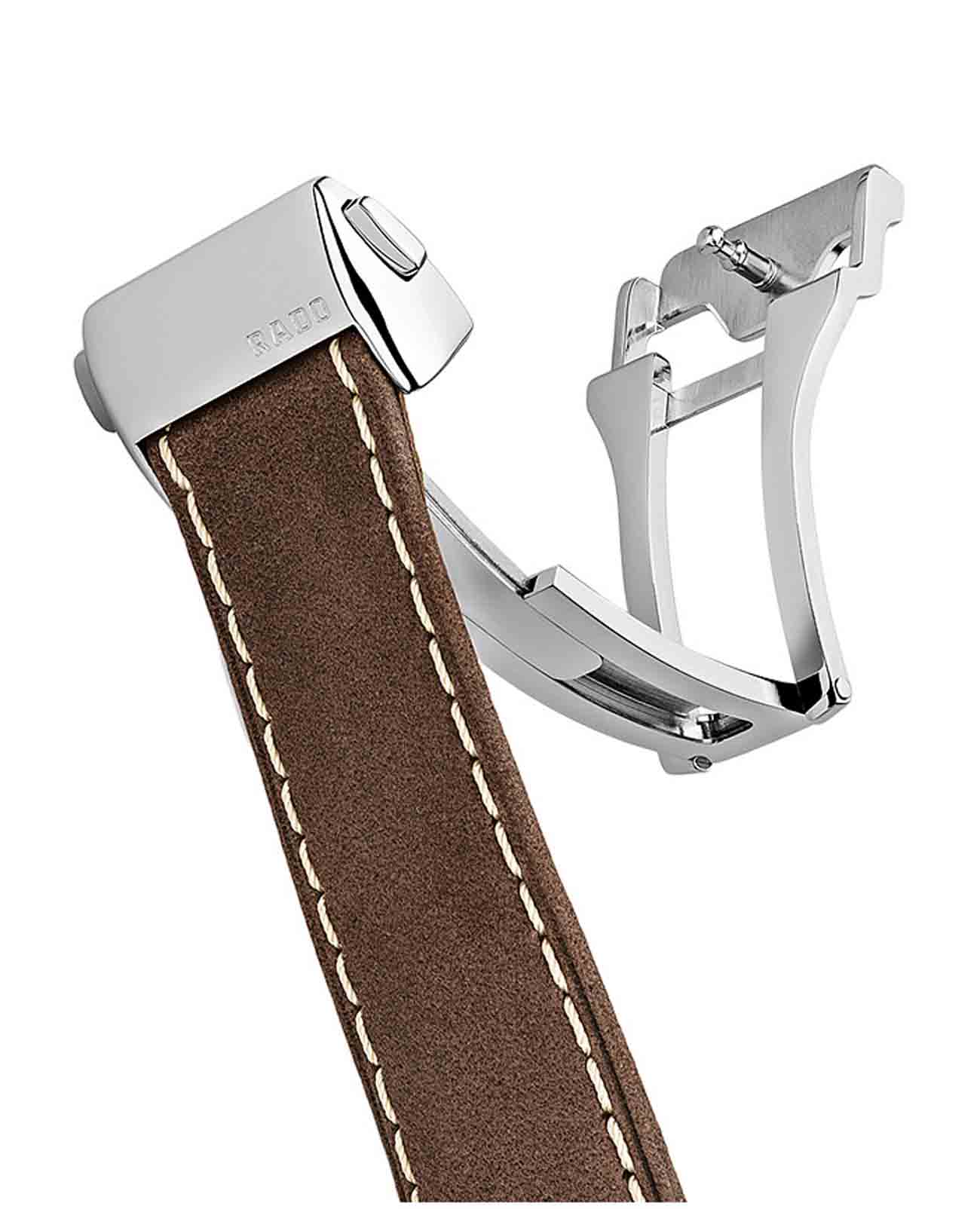 Мужские механические швейцарские часы-хронографХронографФункция позволяет измерять отрезки времени с особой точностью: часы, минуты, секунды. Верным признаком хронографа является наличие на циферблате 3 дополнительных окошек-счётчиков. с автоподзаводом Rado Hyperchrome Automatic Chronograph R32042205. Сапфировое стеклоСапфировое стеклоПрочный и надёжный материал из кристалла сапфира синтетического происхождения, характеризующийся особой твёрдостью и устойчивостью к царапинам и повреждениям. устойчивое к мелким механическим повреждениям. Корпус часов изготовлен из нержавеющей стали и титана. БезельБезельВнешний ободок, закрепляющий стекло. В спортивных часах так называется поворотное кольцо с делениями на циферблате, выполняет роль таймера – замеряет отрезки времени на шкале. Неподвижный безель – элемент декора. Однонаправленно вращающийся безель на дайверских часах позволяет фиксировать моменты погружения и выныривания на поверхность. со шкалой тахиметраТахиметрРазмеченная шкала, располагается на ободке или безеле часов. Тахиметр позволяет рассчитать скорость на определённом участке пути, расстояние измеряется в километрах или милях. из высокотехнологичной керамикиВысокотехнологичная керамикаИнновационный запатентованный Rado материал с гладкой или матовой поверхностью. Керамика за счёт кристаллической структуры обладает повышенной устойчивостью от возникновения царапин. Материал способен принимать температуру тела человека, обеспечивая невероятный комфорт при ношении.. Окошко даты находится в положении между 4 и 5 часами. Стрелки с люминесцентным покрытиемЛюминесцентное покрытиеПозволяет считывать показания времени в темноте. Производители наносят на стрелки, часовые индексы, безель или поверхность циферблата светонакопительный состав, дающий холодное свечение.. Класс водозащиты: 100 метров, позволит плавать, нырять и заниматься другими водными видами спорта. Кожаный ремешок на раскладной застёжкеРаскладная застёжкаТакой тип застёжки используется только на браслетах из металла. Она никогда не раскрывается полностью, происходит разделение на 2 и более частей. Раскладывающая застёжка снизит вероятность потери часов к минимуму..