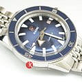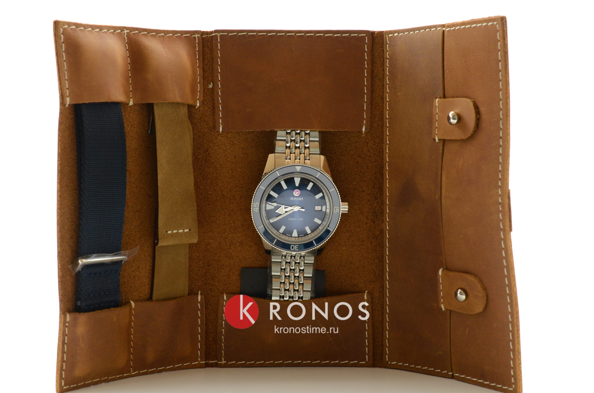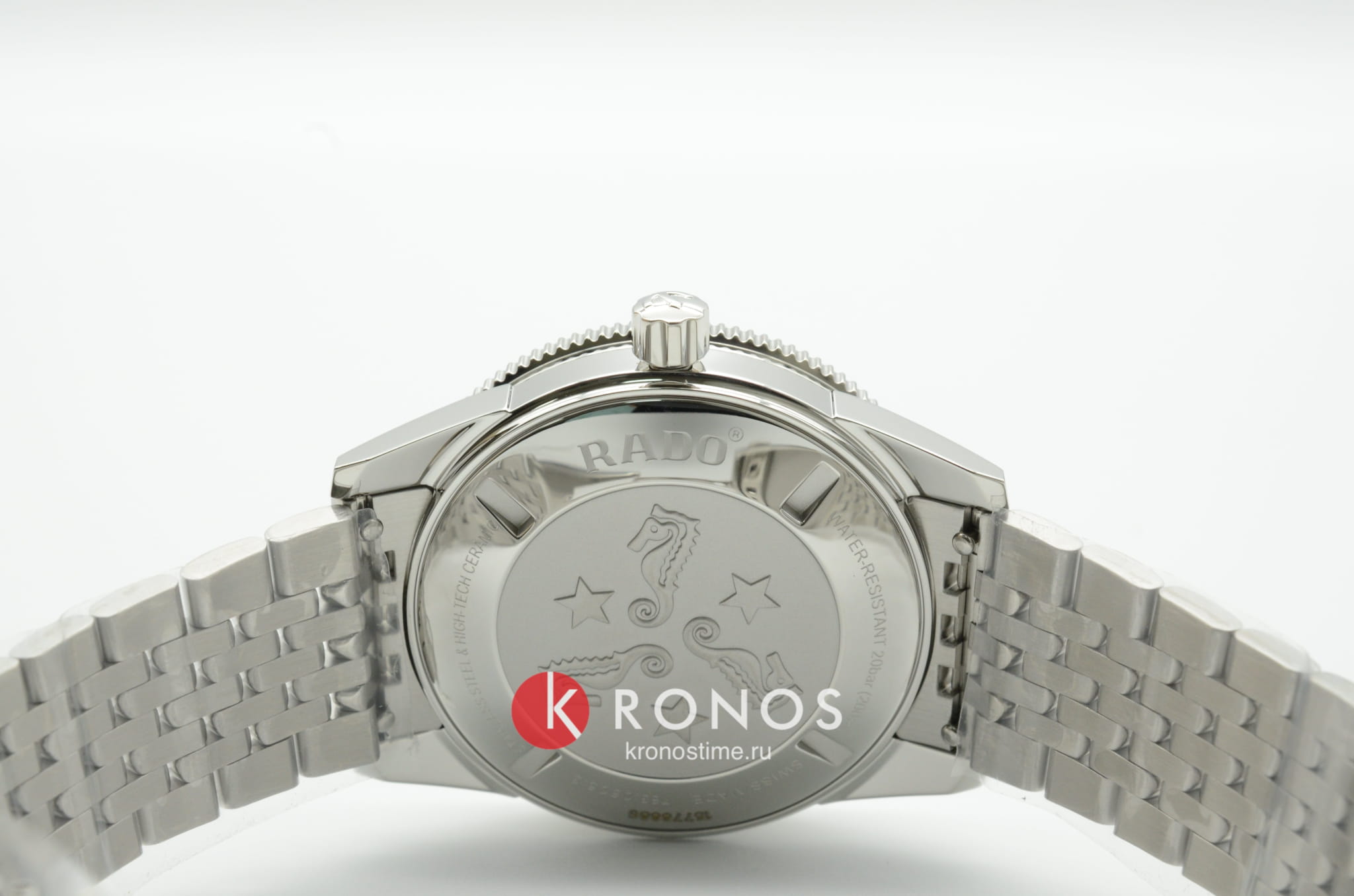Премиальная модель привлекает винтажными деталями, оригинальным элементом стали стрелки в виде меча и стрелы. Синий безельБезельВнешний ободок, закрепляющий стекло. В спортивных часах так называется поворотное кольцо с делениями на циферблате, выполняет роль таймера – замеряет отрезки времени на шкале. Неподвижный безель – элемент декора. Однонаправленно вращающийся безель на дайверских часах позволяет фиксировать моменты погружения и выныривания на поверхность. изготовлен из высокотехнологичной керамикиВысокотехнологичная керамикаИнновационный запатентованный Rado материал с гладкой или матовой поверхностью. Керамика за счёт кристаллической структуры обладает повышенной устойчивостью от возникновения царапин. Материал способен принимать температуру тела человека, обеспечивая невероятный комфорт при ношении., устойчивой к возникновению царапин. Аксессуар выполнен в спортивном стиле, но сдержанная цветовая гамма и лаконичный облик позволяет ему удачно гармонировать с деловой одеждой. Наручные часы работают от автоматического швейцарского механизма ETA C07.611, сохраняющего запас хода до 80 часов. В комплектацию входит дорожный кожаный кейс и набор сменных ремешков: тканевый, стальной, кожаный. Система Rado EasyClip позволяет легко и быстро менять ремешок без использования профессиональных инструментов. Сапфировое стекло имеет антибликовую обработку. Завинчивающаяся заводная головка и задняя крышка усиливают водостойкость до 200 метров. Для стрелок используется люминесцентное покрытиеЛюминесцентное покрытиеПозволяет считывать показания времени в темноте. Производители наносят на стрелки, часовые индексы, безель или поверхность циферблата светонакопительный состав, дающий холодное свечение.. Отображение числа на метке 3 часов. Диаметр корпуса: 42 мм.