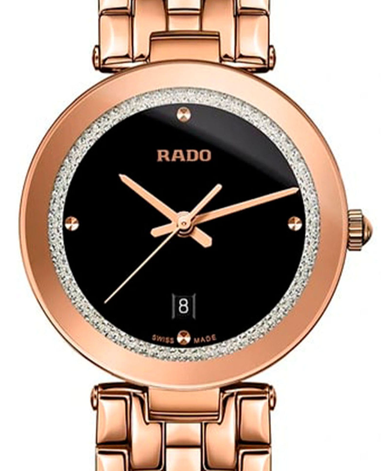 Женские швейцарские кварцевые часы Rado Florence R48873183. Сапфировое стеклоСапфировое стеклоПрочный и надёжный материал из кристалла сапфира синтетического происхождения, характеризующийся особой твёрдостью и устойчивостью к царапинам и повреждениям. устойчивое к мелким механическим повреждениям. Стальной браслет на застёжке-бабочке с кнопкамиЗастёжка "бабочка"Такой вид застёжки дополняется предохранителями, помогающими избежать случайного раскрытия браслета. Обладают изящным исполнением. . Корпус и браслет часов изготовлены из нержавеющей стали с PVD-покрытиемPVDУльтратонкое покрытие наносится в технике вакуумного напыления, сочетает в себе нитрид титана особой прочности со слоем золота или оксида хрома. Несёт в себе декоративную или защитную функцию.. Окошко даты находится в положении 6 часов. Класс водозащиты: 30 метров, позволит защитить корпус от случайных брызг или капель дождя.