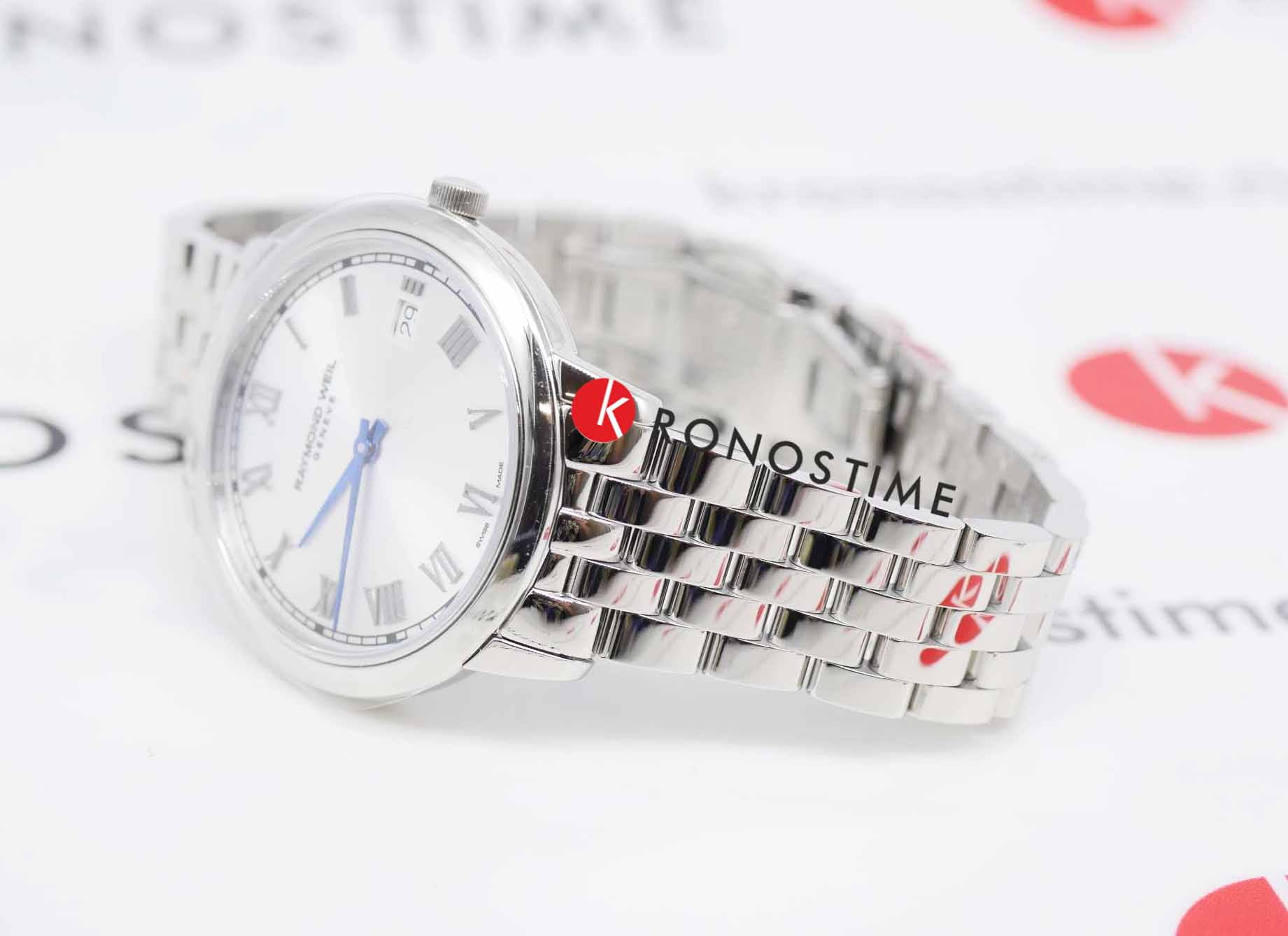 Raymond Weil Toccata (артикул 5385-ST-00659) — элегантные женские часы, сочетающие классический дизайн и функциональность. Корпус диаметром 34 мм выполнен из нержавеющей стали, что обеспечивает прочность и долговечность. Серебристый циферблат украшен римскими цифрами и синими стрелками, добавляя часам изысканности. Окошко даты на отметке «3 часа» обеспечивает удобство использования. Сапфировое стеклоСапфировое стеклоПрочный и надёжный материал из кристалла сапфира синтетического происхождения, характеризующийся особой твёрдостью и устойчивостью к царапинам и повреждениям. защищает часы от царапин, а водонепроницаемость до 50 метров делает их подходящими для повседневной носки. Надёжный кварцевый механизм гарантирует точность хода. Браслет из нержавеющей стали оснащён раскладной застёжкойРаскладная застёжкаТакой тип застёжки используется только на браслетах из металла. Она никогда не раскрывается полностью, происходит разделение на 2 и более частей. Раскладывающая застёжка снизит вероятность потери часов к минимуму. с двойной системой безопасности, что обеспечивает комфорт и надёжность при ношении.