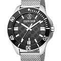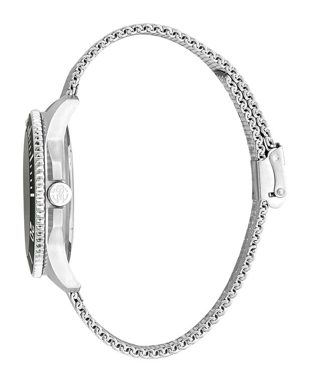 ROBERTO CAVALLI Uomo Sport RC5G013M0045 — стильные итальянские часы сочетающие в себе элегантность и современный функционал. Круглый корпус диаметром 44 мм выполнен из нержавеющей стали, толщина корпуса составляет 11 мм, что придает модели выразительный внешний вид и надежную защиту от внешних воздействий. Часы оснащены кварцевым механизмом, также обладают функцией отображения даты, что делает их удобными для ежедневного использования. Минеральное стеклоМинеральное стеклоМинеральное стекло представляет собой искусственно выращенный минерал кварца. Такое стекло отличается особой устойчивостью к повреждениям и царапинам. Уступает по некоторым качествам сапфировому стеклу. защищает часы от царапин. Водозащита 100 метров, позволит плавать, нырять и заниматься другими водными видами спорта. Стальной браслет миланского плетения на раскладной застёжкеРаскладная застёжкаТакой тип застёжки используется только на браслетах из металла. Она никогда не раскрывается полностью, происходит разделение на 2 и более частей. Раскладывающая застёжка снизит вероятность потери часов к минимуму. обеспечивает комфортное ношение. БезельБезельВнешний ободок, закрепляющий стекло. В спортивных часах так называется поворотное кольцо с делениями на циферблате, выполняет роль таймера – замеряет отрезки времени на шкале. Неподвижный безель – элемент декора. Однонаправленно вращающийся безель на дайверских часах позволяет фиксировать моменты погружения и выныривания на поверхность. с PVD-покрытиемPVDУльтратонкое покрытие наносится в технике вакуумного напыления, сочетает в себе нитрид титана особой прочности со слоем золота или оксида хрома. Несёт в себе декоративную или защитную функцию.. Стрелки и метки с люминесцентным покрытиемЛюминесцентное покрытиеПозволяет считывать показания времени в темноте. Производители наносят на стрелки, часовые индексы, безель или поверхность циферблата светонакопительный состав, дающий холодное свечение. обеспечивают отличную читаемость в любое время суток.
