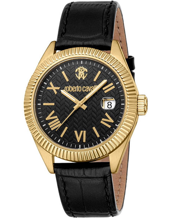 Погрузитесь в мир роскоши и безупречного стиля с мужскими наручными часами ROBERTO CAVALLI RC5G113L0035. Эти часы – воплощение смелого дизайна и итальянской элегантности, созданные для мужчины, который ценит внимание к деталям и не боится заявить о себе. Круглый корпус диаметром 40 мм выполнен из нержавеющей стали с PVD-покрытиемPVDУльтратонкое покрытие наносится в технике вакуумного напыления, сочетает в себе нитрид титана особой прочности со слоем золота или оксида хрома. Несёт в себе декоративную или защитную функцию., толщина корпуса составляет 11 мм, что придает модели выразительный внешний вид и надежную защиту от внешних воздействий. Циферблат, искусно оформленный фирменными элементами Roberto Cavalli, притягивает взгляд и подчеркивает ваш безупречный вкус. Часы оснащены кварцевым механизмом, также обладают функцией отображения даты, что делает их удобными для ежедневного использования. Минеральное стеклоМинеральное стеклоМинеральное стекло представляет собой искусственно выращенный минерал кварца. Такое стекло отличается особой устойчивостью к повреждениям и царапинам. Уступает по некоторым качествам сапфировому стеклу. защищает часы от царапин. Водозащита 100 метров, позволит плавать, нырять и заниматься другими водными видами спорта. Кожаный ремешок на стандартной застёжке обеспечивает комфортное ношение. Рифленый безельБезельВнешний ободок, закрепляющий стекло. В спортивных часах так называется поворотное кольцо с делениями на циферблате, выполняет роль таймера – замеряет отрезки времени на шкале. Неподвижный безель – элемент декора. Однонаправленно вращающийся безель на дайверских часах позволяет фиксировать моменты погружения и выныривания на поверхность.. Стрелки с люминесцентным покрытиемЛюминесцентное покрытиеПозволяет считывать показания времени в темноте. Производители наносят на стрелки, часовые индексы, безель или поверхность циферблата светонакопительный состав, дающий холодное свечение. обеспечивают отличную читаемость в любое время суток.