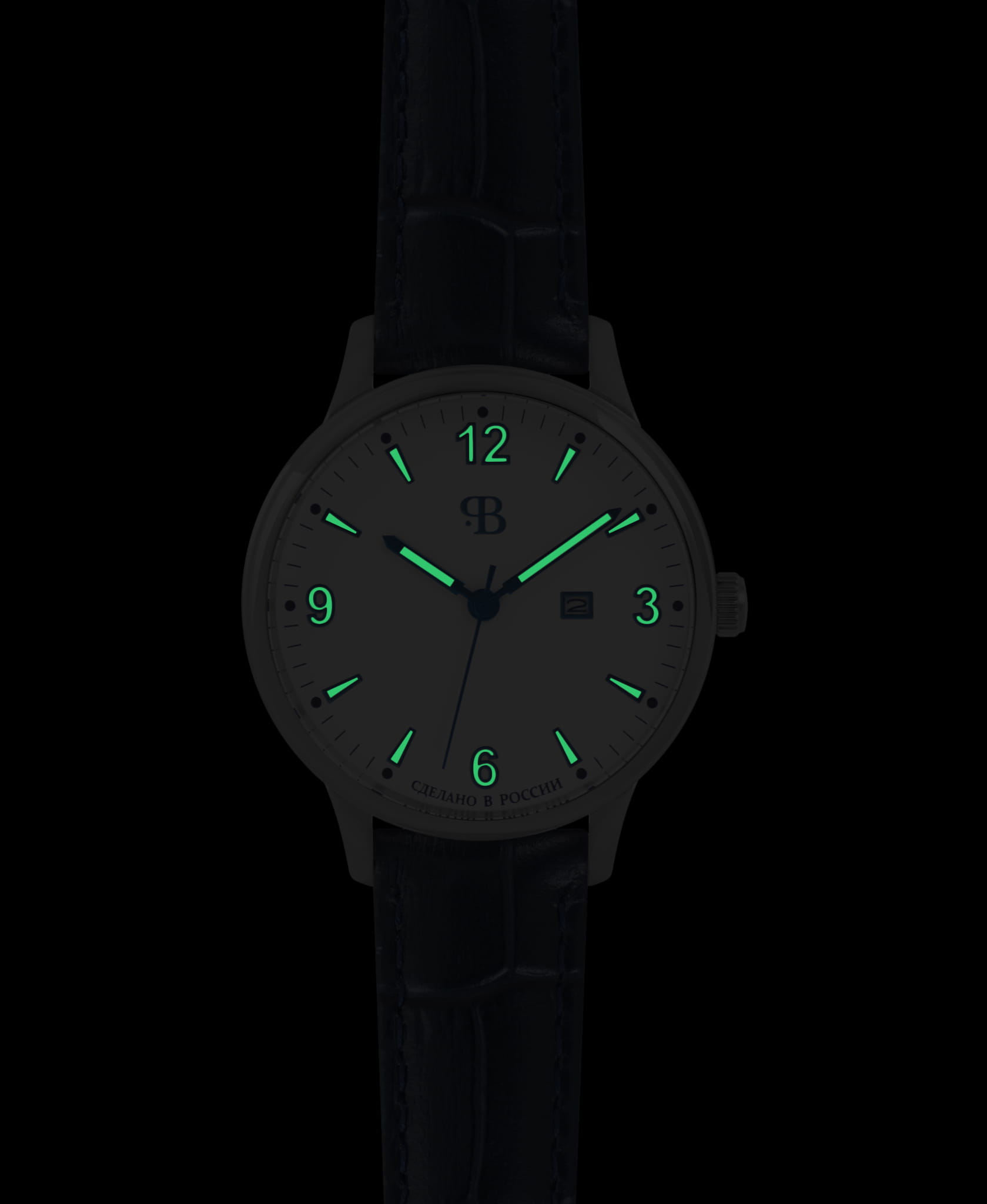 Класс водозащиты часов составляет 30 метров, что позволяет защитить корпус от случайных брызг и капель дождя.Кожаный ремешок на стандартной застежке. Эти часы идеально подойдут для повседневного использования, сочетая в себе стиль, надежность и функциональность. Окошко даты находится в положении 3 часа. Стрелки и метки с люминесцентным покрытиемЛюминесцентное покрытиеПозволяет считывать показания времени в темноте. Производители наносят на стрелки, часовые индексы, безель или поверхность циферблата светонакопительный состав, дающий холодное свечение..