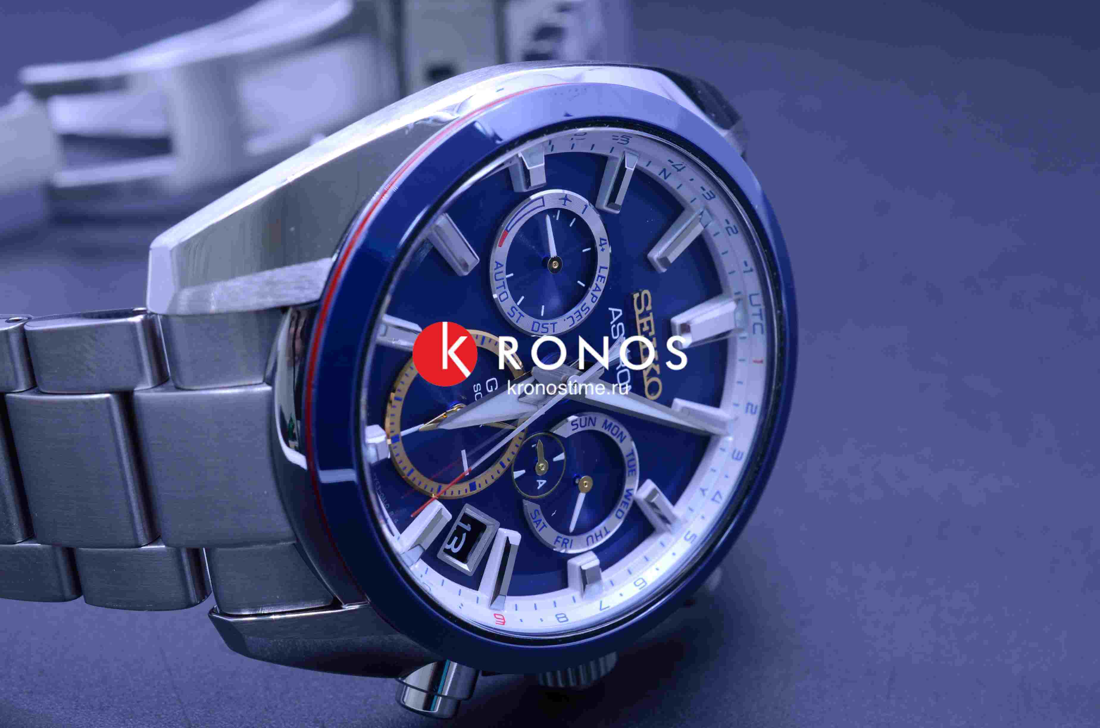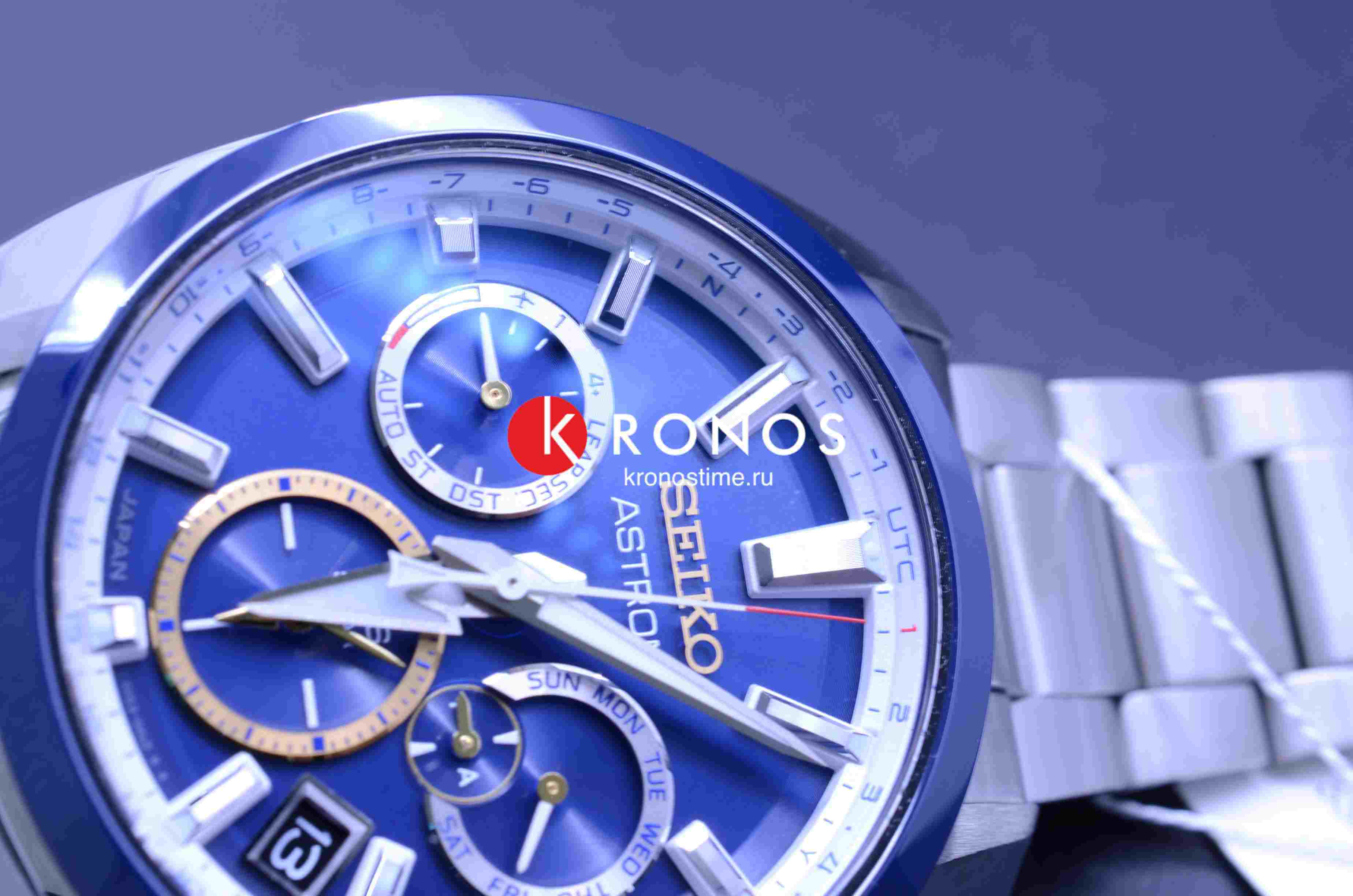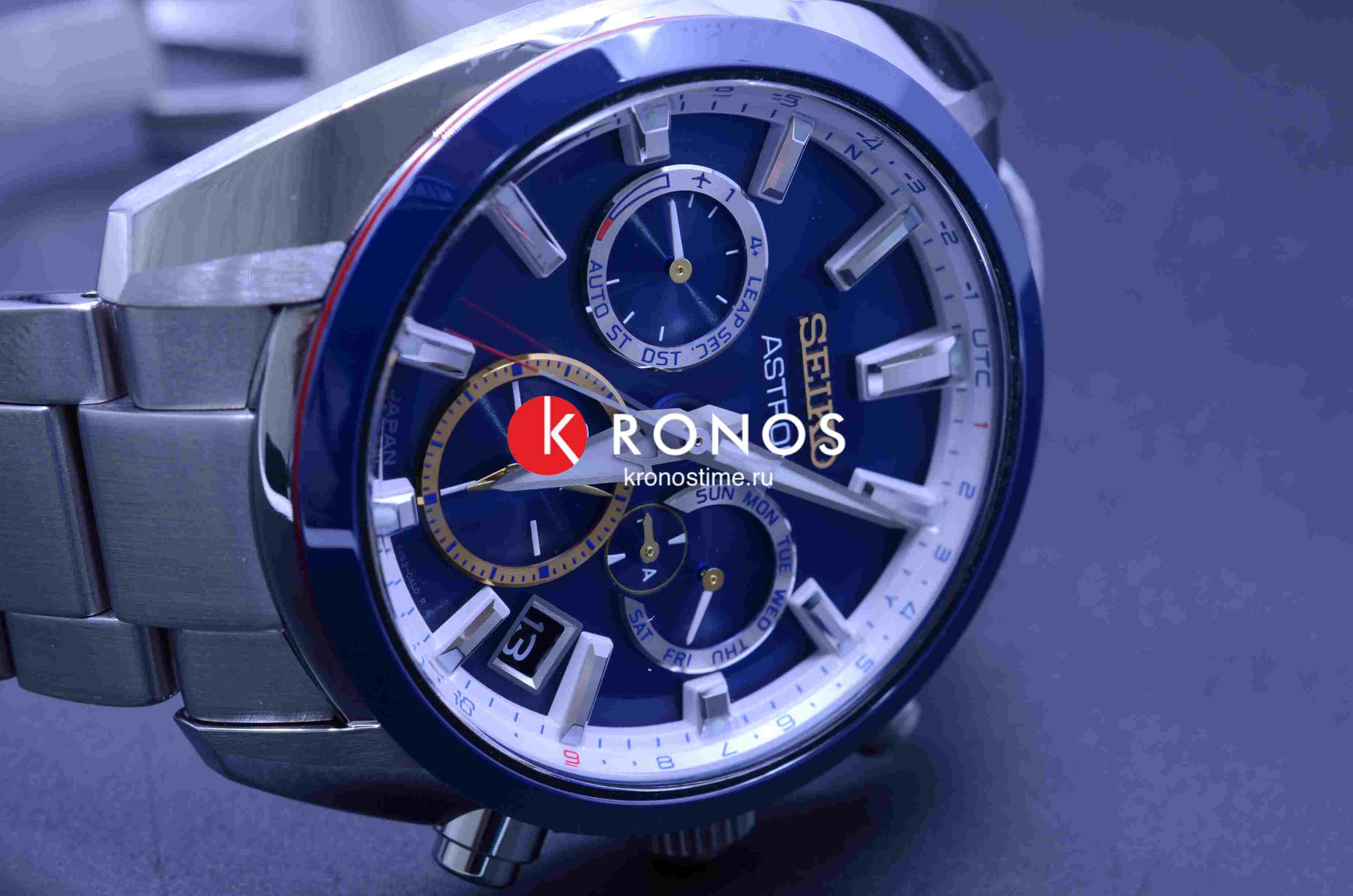 -приёмником, позволяющим определять и автоматически корректировать часовой пояс, дату, точное время. Модель  получает энергию от солнечной панели, обеспечивая автономную работу часов. Японский кварцевый калибр  Seiko 5X53 с точностью хода +/-15 секунд в месяц. Стекло из сапфира. Люминесцентная подсветкаЛюминесцентное покрытиеПозволяет считывать показания времени в темноте. Производители наносят на стрелки, часовые индексы, безель или поверхность циферблата светонакопительный состав, дающий холодное свечение. Lumibrite. Водостойкость 10 бар. Дополнительный силиконовый ремешок в комплекте. Задняя крышка с гравировкой. Функция энергосбережения. Вечный календарьВечный календарьКлассическое часовое усложнение, представляющее собой календарь, рассчитанный на несколько лет вперёд (стандартно – до 2099 года). Определяет текущую дату, день недели, месяц. рассчитан до 28 февраля 2100 года. Мировое времяМировое время Полезное часовое усложнение, отображающее время в основных городах и известных областях по всему миру, оно связано с часовыми поясами, удобно для путешественников и бизнесменов. . Диаметр корпуса: 42,7 мм.