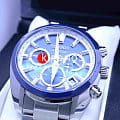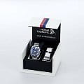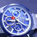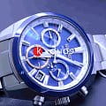 Наручные часы Limited Edition выполнены в серебристо-синей расцветке, часть деталей оставлена в золотистом цвете. Технологичная модель сделана из нержавеющей стали 316L, цветной безельБезельВнешний ободок, закрепляющий стекло. В спортивных часах так называется поворотное кольцо с делениями на циферблате, выполняет роль таймера – замеряет отрезки времени на шкале. Неподвижный безель – элемент декора. Однонаправленно вращающийся безель на дайверских часах позволяет фиксировать моменты погружения и выныривания на поверхность. изготовлен из керамики. Аксессуар оснащён GPSGPSСистема спутниковой навигации. Часы оснащены приёмником GPS-сигнала, который получает необходимую информацию по GSM, GPRS, со спутников. Принимая сигнал, наручные часы могут установить точные показатели времени и даты, часовой пояс, сообщить местоположение своего владельца.