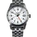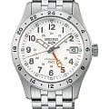 Мужские механические часы с автоподзаводом Seiko из коллекции 5 Sports — это надёжный и функциональный аксессуар. Корпус диаметром 39 мм и толщиной 13,6 мм выполнен из нержавеющей стали. Циферблат белого цвета оформлен арабскими цифрами и стрелками. Окошко даты расположено в положении 3 часов. Присутствует центральная стрелка второго часового пояса (GMT) в 24-часовом формате. Стрелки и метки с люминесцентным покрытиемЛюминесцентное покрытиеПозволяет считывать показания времени в темноте. Производители наносят на стрелки, часовые индексы, безель или поверхность циферблата светонакопительный состав, дающий холодное свечение., обеспечивающим хорошую читаемость в темноте. Циферблат защищён прочным закалённым минеральным стекломМинеральное стеклоМинеральное стекло представляет собой искусственно выращенный минерал кварца. Такое стекло отличается особой устойчивостью к повреждениям и царапинам. Уступает по некоторым качествам сапфировому стеклу. Hardlex. Механизм — автоматический калибр 4R34 (24 камня, частота 21 600 полуколебаний в час) с запасом хода до 41 часа. Часы оснащены стальным браслетом на раскладной застёжкеРаскладная застёжкаТакой тип застёжки используется только на браслетах из металла. Она никогда не раскрывается полностью, происходит разделение на 2 и более частей. Раскладывающая застёжка снизит вероятность потери часов к минимуму. с фиксатором. Водонепроницаемость 100 м позволяет использовать часы для плавания и повседневного ношения. Идеальный выбор для тех, кто ценит японское качество и универсальный дизайн.