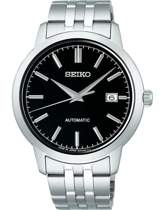 Seiko SCVE061 — сдержанная и надёжная модель с автоматическим механизмом, созданная в лучших традициях японской точности. Корпус из нержавеющей стали отличается строгими линиями и аккуратной отделкой, подчёркивая универсальный мужской стиль. Глубокий чёрный циферблат с лаконичной разметкой выглядит сдержанно и стильно, а окошко даты на «3 часах» делает композицию практичной и завершённой. В основе часов — проверенный калибр 4R35 с автоподзаводом, запасом хода до 41 часа и функцией остановки секундной стрелки. Циферблат защищён прочным минеральным стекломМинеральное стеклоМинеральное стекло представляет собой искусственно выращенный минерал кварца. Такое стекло отличается особой устойчивостью к повреждениям и царапинам. Уступает по некоторым качествам сапфировому стеклу., устойчивым к механическим повреждениям и царапинам. Стальные стрелки и метки обеспечивают хорошую читаемость на тёмном фоне. Часы надёжно сидят на запястье благодаря браслету из нержавеющей стали с удобной раскладной застёжкойРаскладная застёжкаТакой тип застёжки используется только на браслетах из металла. Она никогда не раскрывается полностью, происходит разделение на 2 и более частей. Раскладывающая застёжка снизит вероятность потери часов к минимуму.. Водонепроницаемость до 100 метров делает модель подходящей не только для повседневной носки, но и для активного образа жизни. SCVE061 — это гармоничное сочетание классического дизайна, точности и практичности на каждый день.