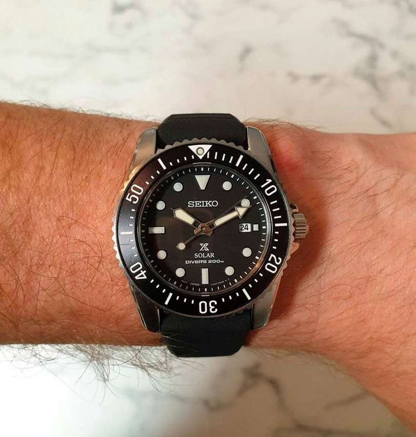 Мужские наручные часы Seiko Prospex SNE573P1 из коллекции Prospex сочетают в себе спортивный дизайн и надежность современных технологий. Модель обладает круглым корпусом диаметром 38,5 мм, изготовленным из нержавеющей стали, что обеспечивает высокую устойчивость к внешним воздействиям . Защита циферблата выполнена с использованием сапфирового стеклаСапфировое стеклоПрочный и надёжный материал из кристалла сапфира синтетического происхождения, характеризующийся особой твёрдостью и устойчивостью к царапинам и повреждениям., устойчивого к появлению царапин и обладающего высокой прозрачностью. Часы оснащены системой Solar, которая не требует замены батарейки и обеспечивает запас хода до 10 месяцев при полной зарядке аккумулятора . Кварцевый механизм с калибром V147 гарантирует высокую точность работы, а функция EOLEOLПредставляет собой систему, уведомляющую владельца часов о необходимости замены элемента питания. За 2 недели до полного разряда батарейки секундная стрелка перестаёт ходить чётко и начинает перепрыгивать на 3-4 деления. позволяет контролировать уровень заряда аккумулятора . Циферблат дополнен люминесцентным покрытиемЛюминесцентное покрытиеПозволяет считывать показания времени в темноте. Производители наносят на стрелки, часовые индексы, безель или поверхность циферблата светонакопительный состав, дающий холодное свечение., обеспечивающим видимость в темное время суток.  Водонепроницаемость модели достигает 200 метров, что делает ее подходящей для плавания, ныряния и других водных видов спорта . Ремешок выполнен из силикона на стандартной застежке, что обеспечивает комфортное ношение и долговечность.