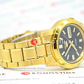Мужские японские часы с запасом хода 41 час Seiko 5 Regular SNKK22K1 с минеральным стекломМинеральное стеклоМинеральное стекло представляет собой искусственно выращенный минерал кварца. Такое стекло отличается особой устойчивостью к повреждениям и царапинам. Уступает по некоторым качествам сапфировому стеклу., механический механизм (автоматический калибр) с высокой точностью. Класс водозащиты: 30 метров, позволит защитить корпус от случайных брызг или капель дождя. Корпус и браслет часов изготовлен из стали с PVD-покрытиемPVDУльтратонкое покрытие наносится в технике вакуумного напыления, сочетает в себе нитрид титана особой прочности со слоем золота или оксида хрома. Несёт в себе декоративную или защитную функцию.. Браслет на раскладной застёжкеРаскладная застёжкаТакой тип застёжки используется только на браслетах из металла. Она никогда не раскрывается полностью, происходит разделение на 2 и более частей. Раскладывающая застёжка снизит вероятность потери часов к минимуму. с кнопками. Окошко даты и дня недели находятся в положении 3 часа. Заводная коронка находится на «4 часах». Стрелки и метки с люминесцентным покрытиемЛюминесцентное покрытиеПозволяет считывать показания времени в темноте. Производители наносят на стрелки, часовые индексы, безель или поверхность циферблата светонакопительный состав, дающий холодное свечение..