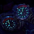 Поворотный безельБезельВнешний ободок, закрепляющий стекло. В спортивных часах так называется поворотное кольцо с делениями на циферблате, выполняет роль таймера – замеряет отрезки времени на шкале. Неподвижный безель – элемент декора. Однонаправленно вращающийся безель на дайверских часах позволяет фиксировать моменты погружения и выныривания на поверхность. выполнен из нержавеющей стали с PVD-покрытиемPVDУльтратонкое покрытие наносится в технике вакуумного напыления, сочетает в себе нитрид титана особой прочности со слоем золота или оксида хрома. Несёт в себе декоративную или защитную функцию., что придает часам дополнительную износостойкость и подчеркивает их элегантный дизайн. Корпус и браслет часов также изготовлены из стали, что гарантирует их долговечность и прочность.