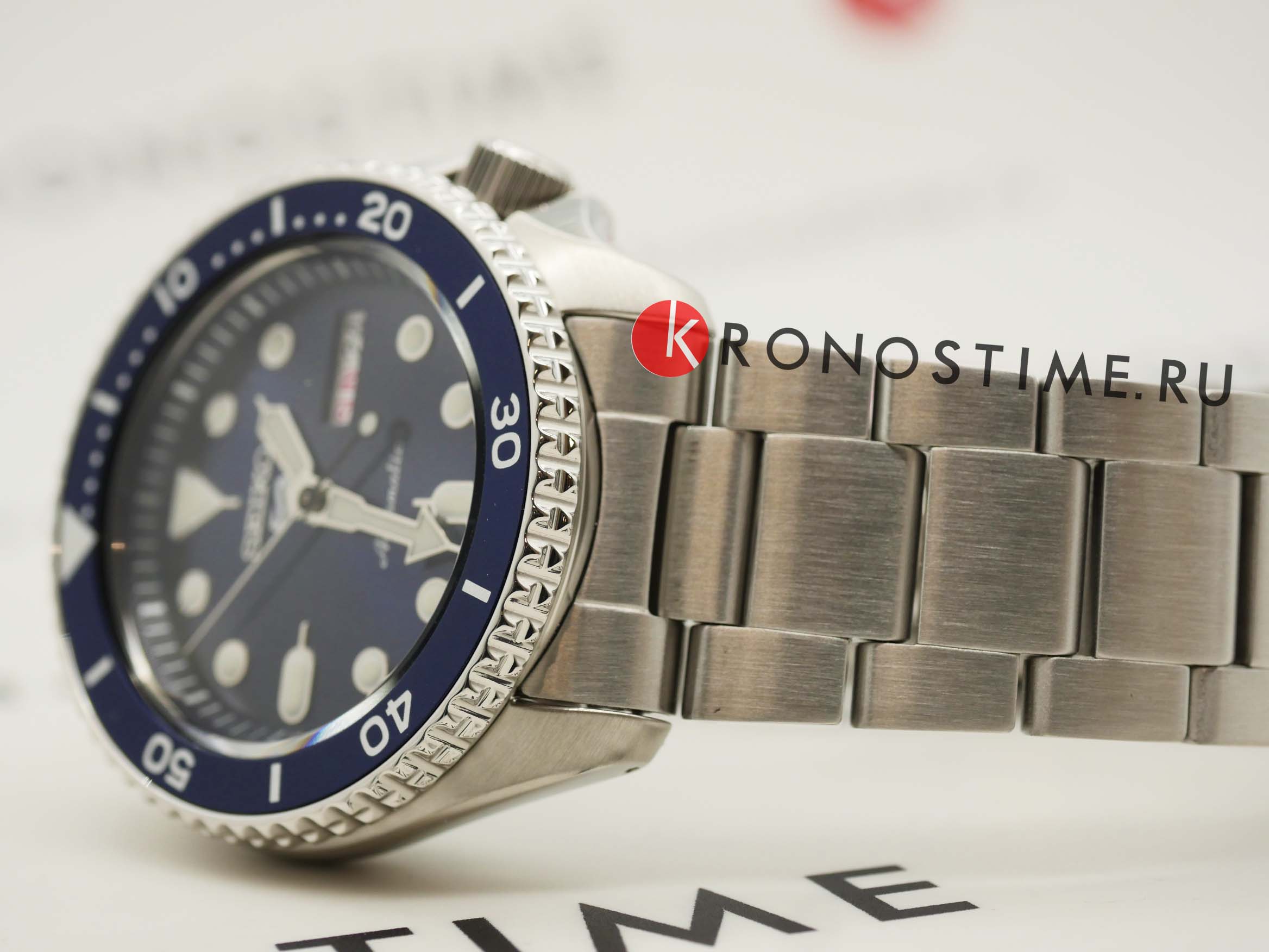 Механические часы Seiko SRPD51K1 из коллекции 5 Sports — это надёжный и функциональный аксессуар, сочетающий в себе точность, прочность и узнаваемый дизайн. Модель оснащена калибром 4R36 с автоподзаводом и возможностью ручной подзаводки. Механизм имеет 24 драгоценных камня и обеспечивает запас хода до 41 часа. Также реализована функция стоп-секунды для точной установки времени, а также отображение дня недели и даты. Циферблат синего цвета выполнен по технологии Sunray, имитирующей солнечные лучи. Метки представлены в виде штрихов и точек, а стрелки и индексы покрыты фирменным люминесцентным составомЛюминесцентное покрытиеПозволяет считывать показания времени в темноте. Производители наносят на стрелки, часовые индексы, безель или поверхность циферблата светонакопительный состав, дающий холодное свечение. LumiBrite, обеспечивающим отличную читаемость даже в темноте. Защиту циферблата обеспечивает минеральное стеклоМинеральное стеклоМинеральное стекло представляет собой искусственно выращенный минерал кварца. Такое стекло отличается особой устойчивостью к повреждениям и царапинам. Уступает по некоторым качествам сапфировому стеклу. повышенной прочности Hardlex. Часы имеют односторонне вращающийся безельБезельВнешний ободок, закрепляющий стекло. В спортивных часах так называется поворотное кольцо с делениями на циферблате, выполняет роль таймера – замеряет отрезки времени на шкале. Неподвижный безель – элемент декора. Однонаправленно вращающийся безель на дайверских часах позволяет фиксировать моменты погружения и выныривания на поверхность. — удобный элемент для контроля времени при водных активностях. Заводная головка с защитой расположена в положении 4 часов, что повышает комфорт при ношении. Задняя крышка — завинчивающаяся и прозрачная, что позволяет наблюдать за работой механизма. Корпус диаметром 42,5 мм изготовлен из стали с частичным PVD-покрытиемPVDУльтратонкое покрытие наносится в технике вакуумного напыления, сочетает в себе нитрид титана особой прочности со слоем золота или оксида хрома. Несёт в себе декоративную или защитную функцию., придающим модели благородный внешний вид. Браслет выполнен из стали и оснащён трёхсгибной раскладной застёжкойРаскладная застёжкаТакой тип застёжки используется только на браслетах из металла. Она никогда не раскрывается полностью, происходит разделение на 2 и более частей. Раскладывающая застёжка снизит вероятность потери часов к минимуму. с системой блокировки, обеспечивающей комфорт и уверенную фиксацию на запястье. Ширина браслета составляет 22 мм, что делает его гармонично сочетающимся с корпусом. Часы водонепроницаемы до 100 метров (), что позволяет использовать их при плавании и других водных активностях. Также реализована защита от магнитных полей до 4800 А/м. Эти часы станут универсальным аксессуаром для тех, кто ценит сочетание технологичности, прочности и эстетики — идеальный выбор как для повседневного использования, так и для активного образа жизни.