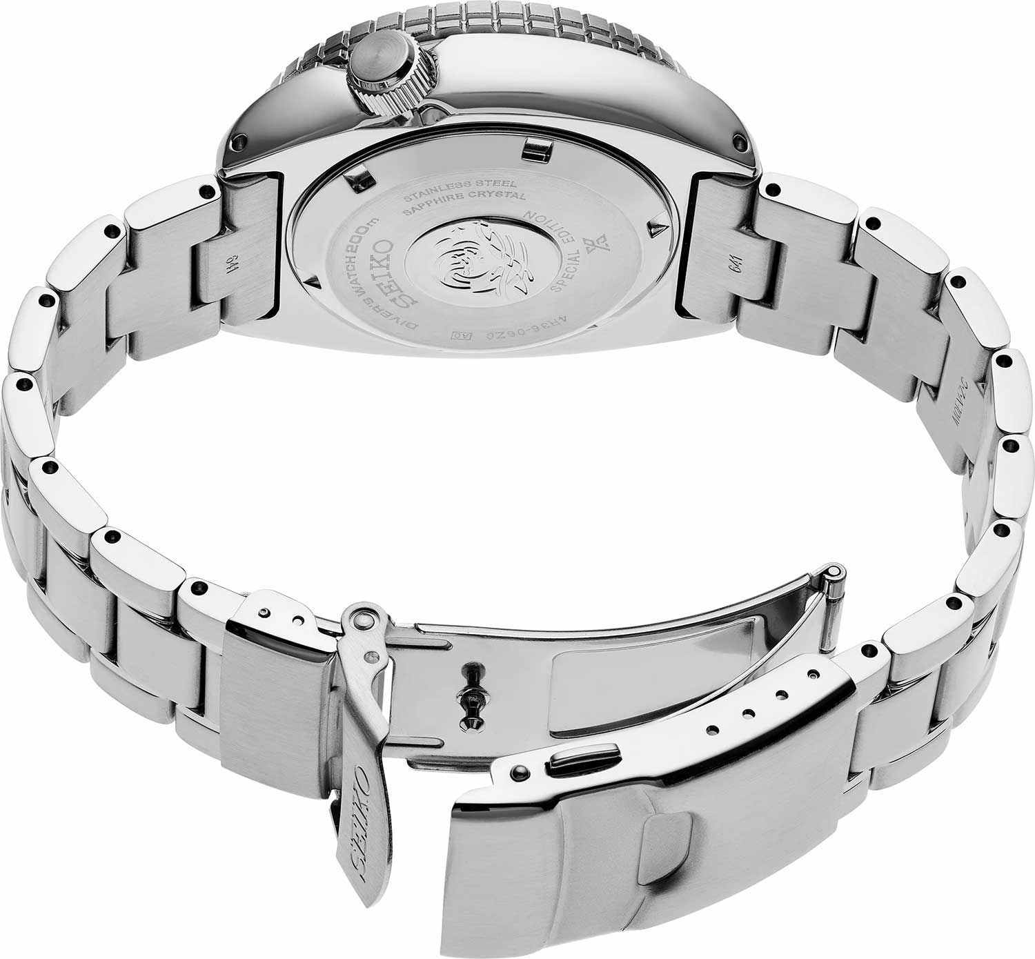 Seiko Prospex PADI Special Edition SRPK01K1 — профессиональные автоматические часы, созданные в рамках сотрудничества с PADI, крупнейшей организацией инструкторов по дайвингу. Массивный корпус диаметром 45 мм выполнен из нержавеющей стали и защищён завинчивающейся задней крышкой и заводной головкой. Циферблат закрыт прочным сапфировым стекломСапфировое стеклоПрочный и надёжный материал из кристалла сапфира синтетического происхождения, характеризующийся особой твёрдостью и устойчивостью к царапинам и повреждениям. с антибликовым покрытиемАнтибликовое покрытиеСлой оксида металла в 0,13-0,3 микрон, благодаря которому стекло часов не бликует и не отражает свет. Антибликовое покрытие уменьшает отражение света в 10 раз, обеспечивая отличную читаемость показателей циферблата. и увеличительным стеклом над календарём. Градиентный синий циферблат с волнистым узором имитирует солнечные блики на воде и украшен логотипом PADI. Метки и стрелки покрыты люминесцентным покрытиемЛюминесцентное покрытиеПозволяет считывать показания времени в темноте. Производители наносят на стрелки, часовые индексы, безель или поверхность циферблата светонакопительный состав, дающий холодное свечение. LumiBrite для превосходной читаемости в темноте и под водой. БезельБезельВнешний ободок, закрепляющий стекло. В спортивных часах так называется поворотное кольцо с делениями на циферблате, выполняет роль таймера – замеряет отрезки времени на шкале. Неподвижный безель – элемент декора. Однонаправленно вращающийся безель на дайверских часах позволяет фиксировать моменты погружения и выныривания на поверхность. с PVD-покрытиемPVDУльтратонкое покрытие наносится в технике вакуумного напыления, сочетает в себе нитрид титана особой прочности со слоем золота или оксида хрома. Несёт в себе декоративную или защитную функцию.. Модель оснащена автоматическим механизмом Seiko 4R36 с ручным заводом, 24 камнями и функцией остановки секундной стрелки. Запас хода составляет около 41 часа. На циферблате — отображение времени, даты и дня недели на позиции «3 часа». Браслет из нержавеющей стали снабжён тройной раскладной застёжкойРаскладная застёжкаТакой тип застёжки используется только на браслетах из металла. Она никогда не раскрывается полностью, происходит разделение на 2 и более частей. Раскладывающая застёжка снизит вероятность потери часов к минимуму. с кнопками и удлинением для дайверовУдлинение для дайверовЗастёжка с удлинением для дайверов представляет собой безопасное крепление, которое позволяет надевать часы поверх гидрокостюма. Гибкая застёжка удлиняется на 1-2 миллиметра.. Часы соответствуют ISO-стандарту и обладают водонепроницаемостью до 200 метров, что делает их надёжным выбором как для дайвинга, так и для повседневной носки. SRPK01 — мощная и функциональная модель с морским характером и профессиональными возможностями.
