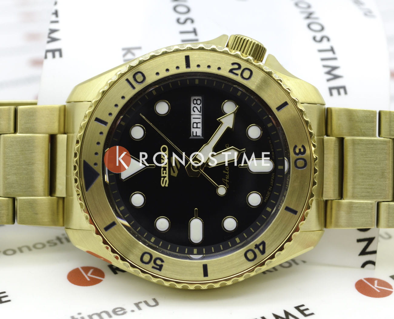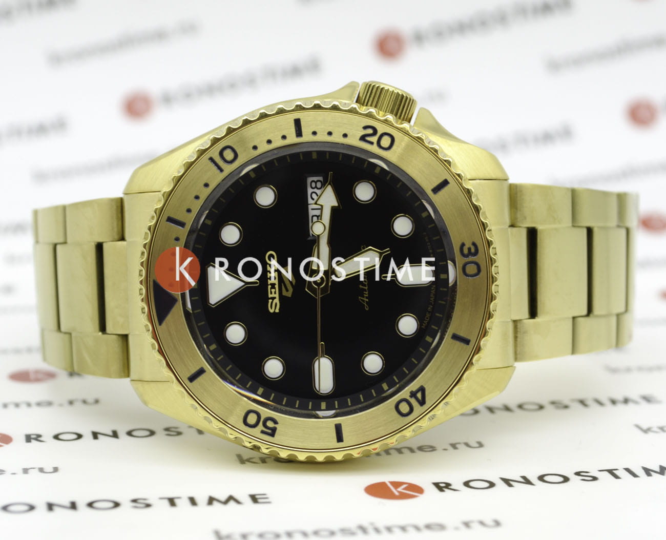 Часы Seiko 5 Sports SRPK18 представляют собой элегантное сочетание классического дизайна и современных технологий. Корпус диаметром 42,5 мм выполнен из нержавеющей стали с PVD-покрытиемPVDУльтратонкое покрытие наносится в технике вакуумного напыления, сочетает в себе нитрид титана особой прочности со слоем золота или оксида хрома. Несёт в себе декоративную или защитную функцию. золотого цвета, придающим часам утончённый вид. Чёрный циферблат защищён минеральным стекломМинеральное стеклоМинеральное стекло представляет собой искусственно выращенный минерал кварца. Такое стекло отличается особой устойчивостью к повреждениям и царапинам. Уступает по некоторым качествам сапфировому стеклу. с повышенной прочностью.