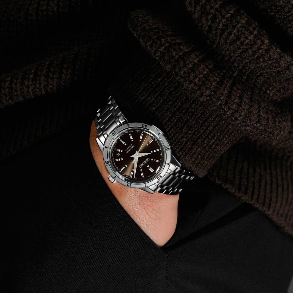 Мужские наручные часы Seiko SRPL09J1 из коллекции Presage Style 60s сочетают в себе классический дизайн и надежность современных технологий. Модель обладает круглым корпусом диаметром 40 мм, изготовленным из нержавеющей стали, что обеспечивает высокую устойчивость к внешним воздействиям . Толщина корпуса составляет 12 мм, а для защиты используется минеральное стеклоМинеральное стеклоМинеральное стекло представляет собой искусственно выращенный минерал кварца. Такое стекло отличается особой устойчивостью к повреждениям и царапинам. Уступает по некоторым качествам сапфировому стеклу. Hardlex Crystal, обеспечивающее прочную защиту от царапин. Браслет также выполнен из нержавеющей стали с раскладной застежкойРаскладная застёжкаТакой тип застёжки используется только на браслетах из металла. Она никогда не раскрывается полностью, происходит разделение на 2 и более частей. Раскладывающая застёжка снизит вероятность потери часов к минимуму., гарантирующей комфортное ношение . Циферблат черного цвета украшен текстурой, которая подчеркивает элегантный стиль модели. Часы оснащены функцией отображения даты на позиции между «4 и 5 часами» . Модель работает на автоматическом механизме с калибром 4R35, который включает 23 камня и обладает запасом хода до 41 часа . Водонепроницаемость составляет WR 50, что позволяет защитить корпус от случайных брызг и кратковременного контакта с водой . Вдохновленные культурой 1960-х годов, эти часы демонстрируют уникальный стиль и внимание к деталям, сохраняя при этом практичность для повседневного использования.