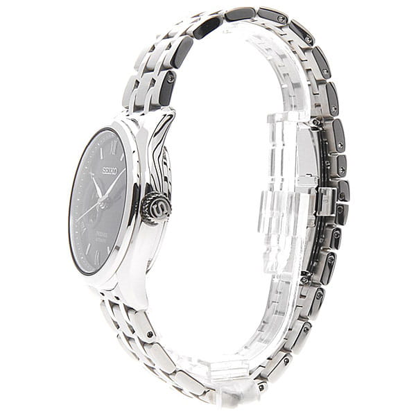 Японские женские механические часы Seiko Presage SSA411J1, механический механизм (автоматический калибр) с высокой точностью. Класс водозащиты: 30 метров, позволит защитить корпус от случайных брызг или капель дождя. Корпус часов изготовлен из стали, серебристого цвета.