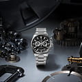 Модель Seiko SSB397P1 — это спортивный хронограф, сочетающий в себе функциональность и элегантный дизайн.  Корпус и браслет выполнены из нержавеющей стали, подчёркивая прочность и элегантность конструкции.  Чёрный циферблат с тремя дополнительными шкалами и метками, покрытыми люминесцентным покрытиемЛюминесцентное покрытиеПозволяет считывать показания времени в темноте. Производители наносят на стрелки, часовые индексы, безель или поверхность циферблата светонакопительный состав, дающий холодное свечение., обеспечивает отличную читаемость в любых условиях.