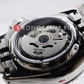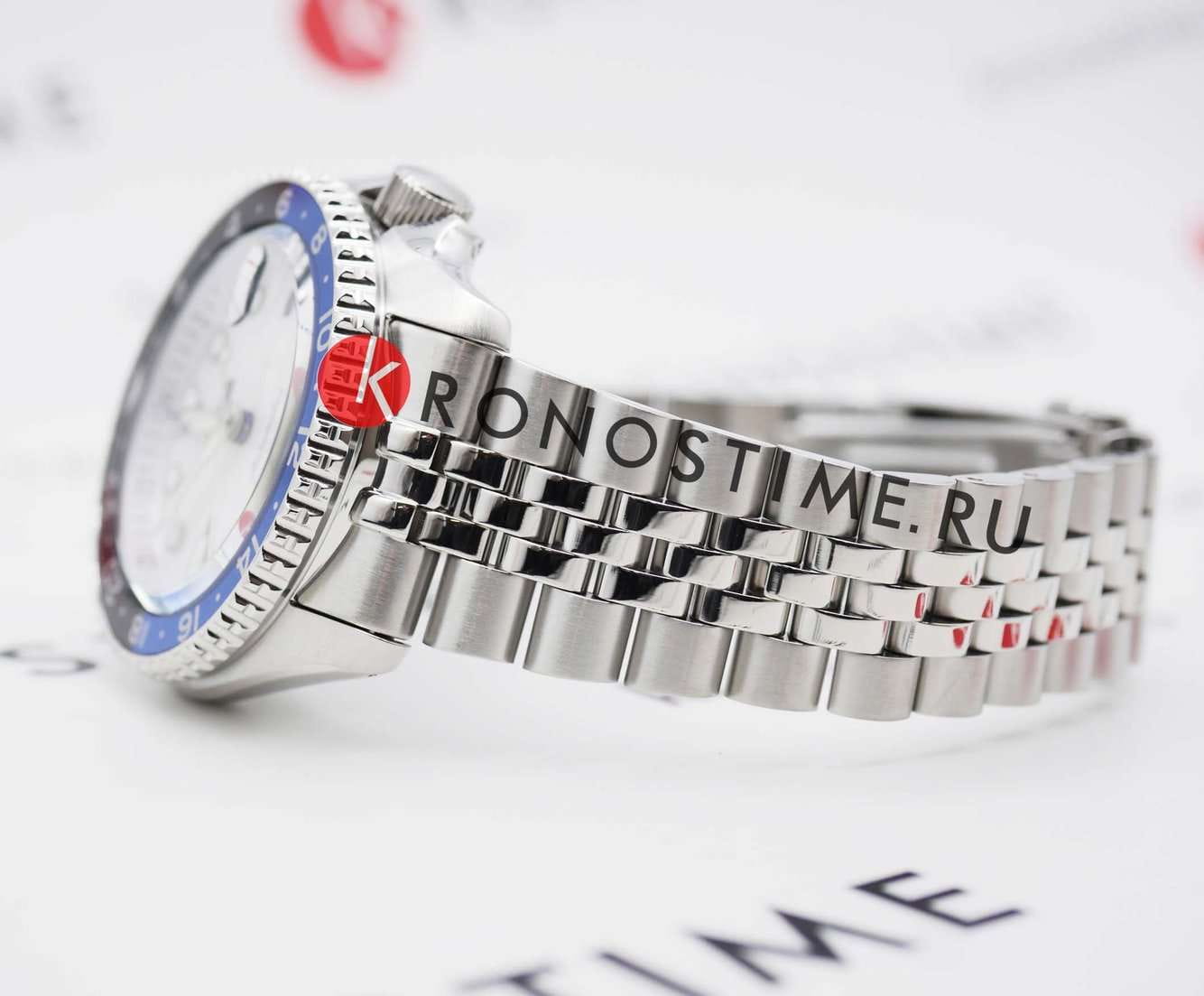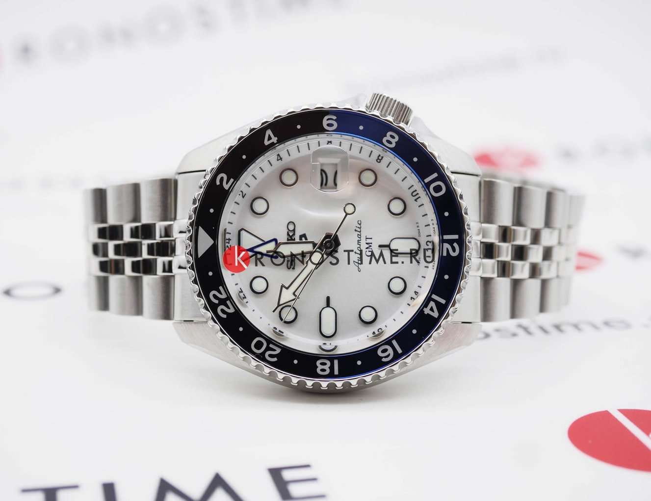 Механические часы Seiko SSK033 из коллекции 5 Sports SKX — это сочетание надёжности, функциональности и стиля. Модель оснащена калибром 4R34 с автоподзаводом и возможностью ручной подзаводки. Механизм имеет 24 драгоценных камня и обеспечивает запас хода до 41 часа. Также реализована функция стоп-секунды для точной установки времени и защита от магнитных полей до 4800 А/м. Второй часовой пояс отображается центральной стрелкой в 24-часовом формате. Циферблат серебристого цвета выполнен по технологии Sunray, имитирующей солнечные лучи. Метки представлены в виде точек и штрихов, а стрелки и индексы дополнены фирменным люминесцентным покрытиемЛюминесцентное покрытиеПозволяет считывать показания времени в темноте. Производители наносят на стрелки, часовые индексы, безель или поверхность циферблата светонакопительный состав, дающий холодное свечение. LumiBrite, обеспечивающим отличную читаемость даже в темноте. Окошко даты оснащено увеличительным стеклом, что делает показания ещё более удобными для восприятия. Часы защищены минеральным стекломМинеральное стеклоМинеральное стекло представляет собой искусственно выращенный минерал кварца. Такое стекло отличается особой устойчивостью к повреждениям и царапинам. Уступает по некоторым качествам сапфировому стеклу. повышенной прочности Hardlex, устойчивым к мелким царапинам и повреждениям. Вращающийся безель с 24-часовой шкалой выполнен в классическом стиле и дополнен рифлёной поверхностью для удобства вращения. Заводная головка имеет защиту и расположена в положении 4 часов, что повышает комфорт при ношении. Корпус диаметром 42,5 мм изготовлен из нержавеющей стали с частичным PVD-покрытиемPVDУльтратонкое покрытие наносится в технике вакуумного напыления, сочетает в себе нитрид титана особой прочности со слоем золота или оксида хрома. Несёт в себе декоративную или защитную функцию., придающим модели благородный внешний вид. Задняя крышка — завинчивающаяся и прозрачная, что позволяет рассмотреть работу механизма и подчёркивает внимание к деталям внутренней отделки. Часы водонепроницаемы до 100 метров (), что позволяет использовать их при плавании и других водных активностях. Браслет выполнен из стали и оснащён трёхсгибной раскладной застёжкойРаскладная застёжкаТакой тип застёжки используется только на браслетах из металла. Она никогда не раскрывается полностью, происходит разделение на 2 и более частей. Раскладывающая застёжка снизит вероятность потери часов к минимуму. с системой блокировки, обеспечивающей комфорт и уверенную фиксацию на запястье. Общая длина браслета составляет 205 мм, а ширина — 22 мм, что делает его подходящим для большинства размеров рук. Эти часы станут универсальным аксессуаром для тех, кто ценит сочетание технологичности, прочности и эстетики — идеальный выбор как для повседневного использования, так и для активного образа жизни.