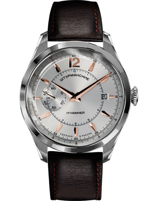 Мужские российские механические часы Штурманские 3105/1881917, механический механизм (автоматический калибр) с высокой точностью. Минеральное стеклоМинеральное стеклоМинеральное стекло представляет собой искусственно выращенный минерал кварца. Такое стекло отличается особой устойчивостью к повреждениям и царапинам. Уступает по некоторым качествам сапфировому стеклу. устойчивое к мелким механическим повреждениям. Класс водозащиты: 50 метров, позволит защитить корпус от случайных брызг или капель дождя. Корпус часов изготовлен из стали. Кожаный ремешок на стандартной застёжке. Чёткая, читаемая минутная шкала уходит за приделы видимой области циферблата, подчёркивая изящность ободка корпуса. Окошко даты находится в положении 3 часов.