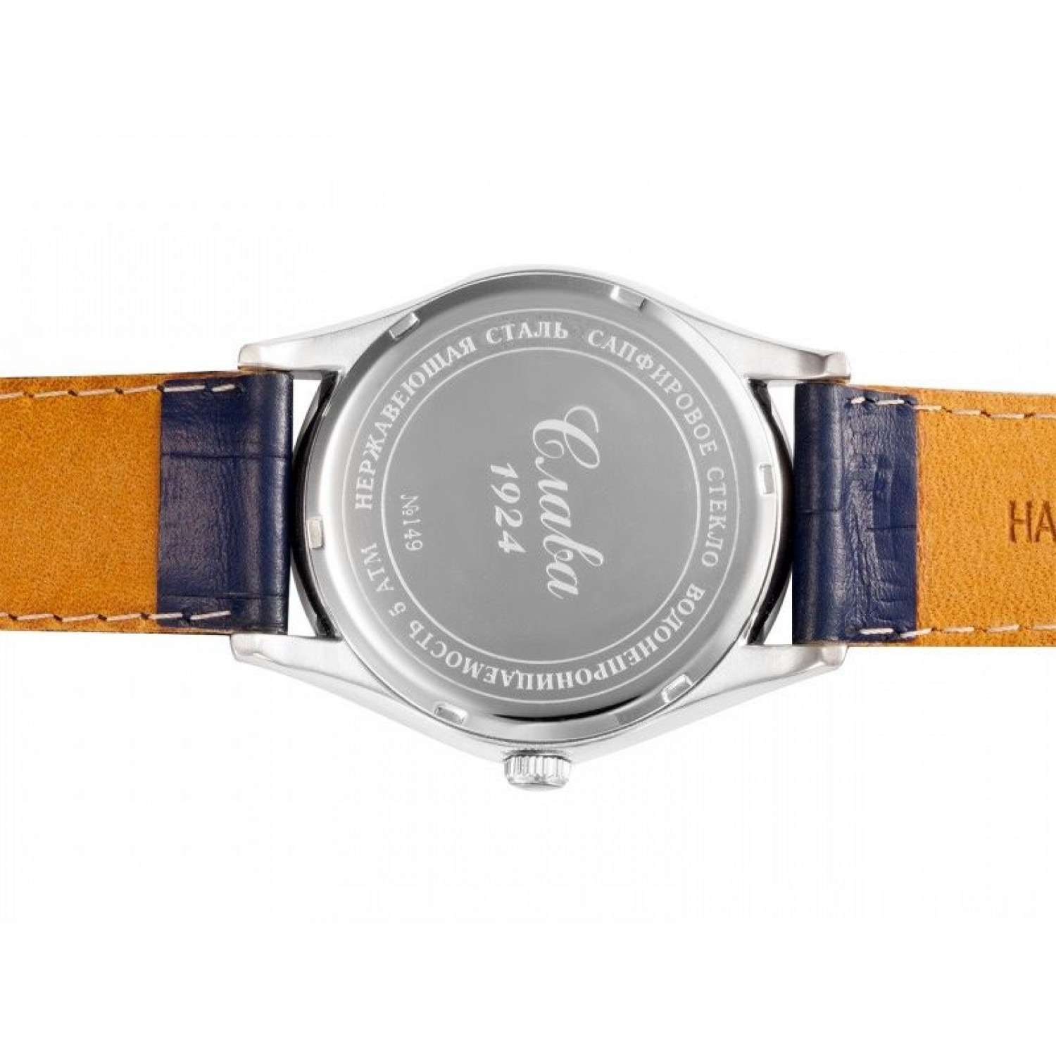 Российские механические наручные часы Слава Сенат 1490857/300-8215, которые станут идеальным аксессуаром для повседневного ношения. Эти часы сочетают в себе элегантность и практичность, предлагая безупречный стиль и надежность. Оснащенные механизмом Miyota 8215 с автоподзаводом, они обеспечивают точность и долговечность. Стальной корпус с сапфировым стекломСапфировое стеклоПрочный и надёжный материал из кристалла сапфира синтетического происхождения, характеризующийся особой твёрдостью и устойчивостью к царапинам и повреждениям. защищает синий циферблат с арабскими цифрами. На циферблате изображены герб Российской Федерации. Часы также имеют календарь с окошком даты на 3 часах и водозащиту до 50WR, что делает их надежными в различных условиях. Текстурированный кожаный синий ремешок с классической застежкой завершает этот изысканный образ.