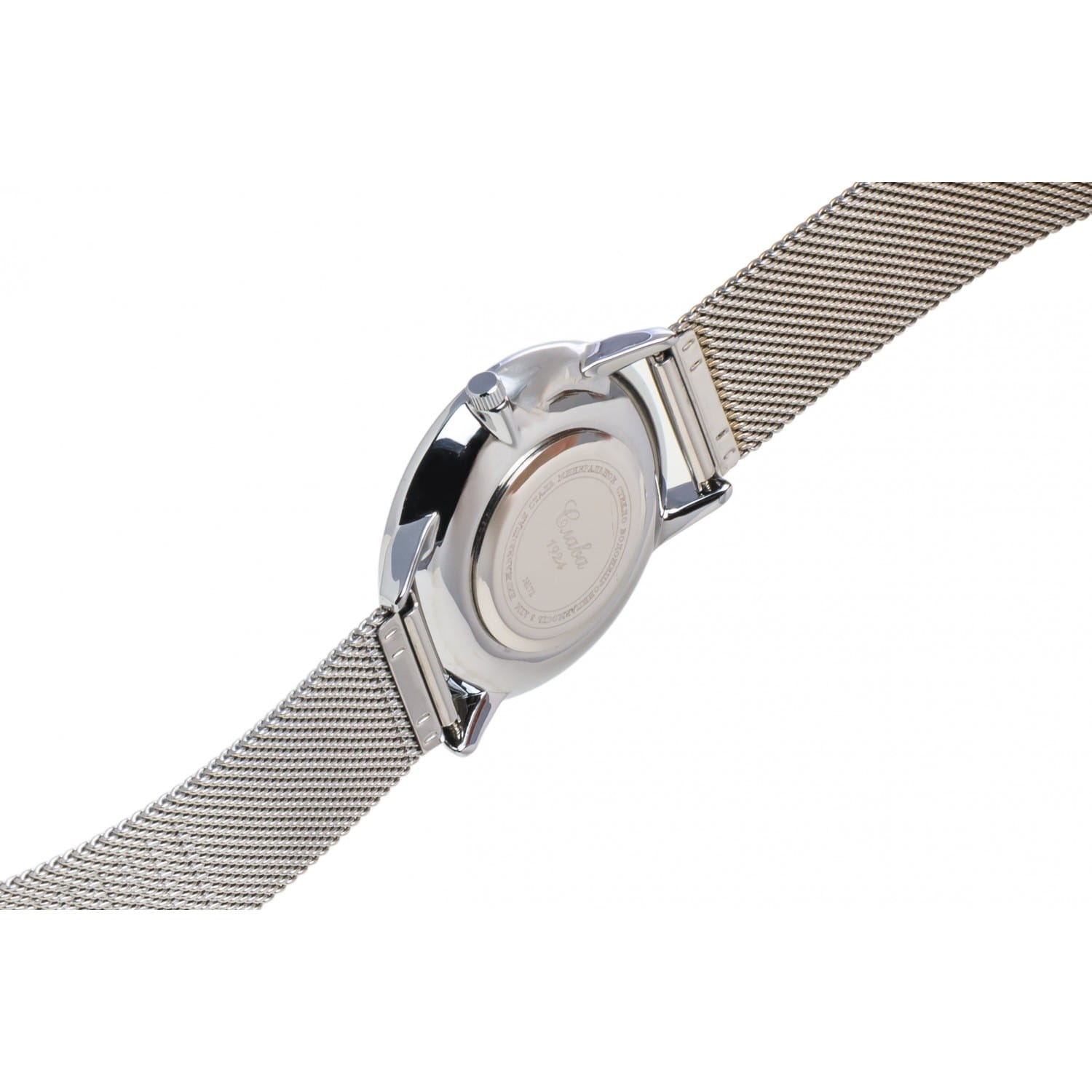 Класс водозащиты часов составляет 30 метров, что позволяет защитить корпус от случайных брызг и капель дождя.Стальной браслет миланского плетения на раскладном замкеРаскладной замокДанный вариант застежки используется только на часах с металлическим браслетом. Отличительная особенность такого крепления в том, что длина браслета становится универсальной и вы можете самостоятельно отрегулировать нужный вам размер – застежка просто двигается по браслету часов.. Эти часы идеально подойдут для повседневного использования, сочетая в себе стиль, надежность и функциональность.