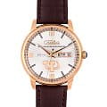 Российские механические часы с автоподзаводом Слава Революция 2603269/300-2427 созданы для тех, кто ценит стиль и надежность. Эта модель является плодом сотрудничества Часовой компании «Слава» и знаменитого мастера Александра Шорохова, который известен своим вкладом в возрождение российского часового мастерства и продвижение культуры в мире. Эти часы выполнены в соответствии с эскизами мастера, с использованием революционных символов — серпа и молота. Часы Слава «Революция» обладают механизмом с автоподзаводом «Слава 2427», украшенным ручной гравировкой, который можно наблюдать через прозрачную заднюю крышку. Этот механизм обеспечивает надежность и точность, а также добавляет элемент эксклюзивности. Корпус часов выполнен из стали c IP-покрытиемIP-покрытиеМетод ионного напыления. Демонстрирует повышенную устойчивость к истиранию, окислению и химическим веществам. Под воздействием высокого давления и температуры около 1500°C молекулы металла надёжно соединяются с частицами корпуса часов. золотистого цвета, который гармонично сочетается с белым циферблатом. Диаметр корпуса составляет 44 мм, а толщина — 14,5 мм, что делает часы выразительными и комфортными для носки. Сапфировое стеклоСапфировое стеклоПрочный и надёжный материал из кристалла сапфира синтетического происхождения, характеризующийся особой твёрдостью и устойчивостью к царапинам и повреждениям. защищает циферблат от царапин и обеспечивает долгий срок службы. Часы оснащены функцией двойного календаря, который отображает дату, что добавляет практичности в повседневной носке. Натуральный кожаный ремешок с застежкой «бабочка»Застёжка "бабочка"Такой вид застёжки дополняется предохранителями, помогающими избежать случайного раскрытия браслета. Обладают изящным исполнением. завершают образ, обеспечивая удобство и стиль. С водонепроницаемостью до 100 метров эти часы подходят для активного образа жизни, позволяя не беспокоиться о случайных контактах с водой, таких как плавание или дождь. Слава «Революция» выпускаются ограниченной серией — в трех видах по 100 штук.