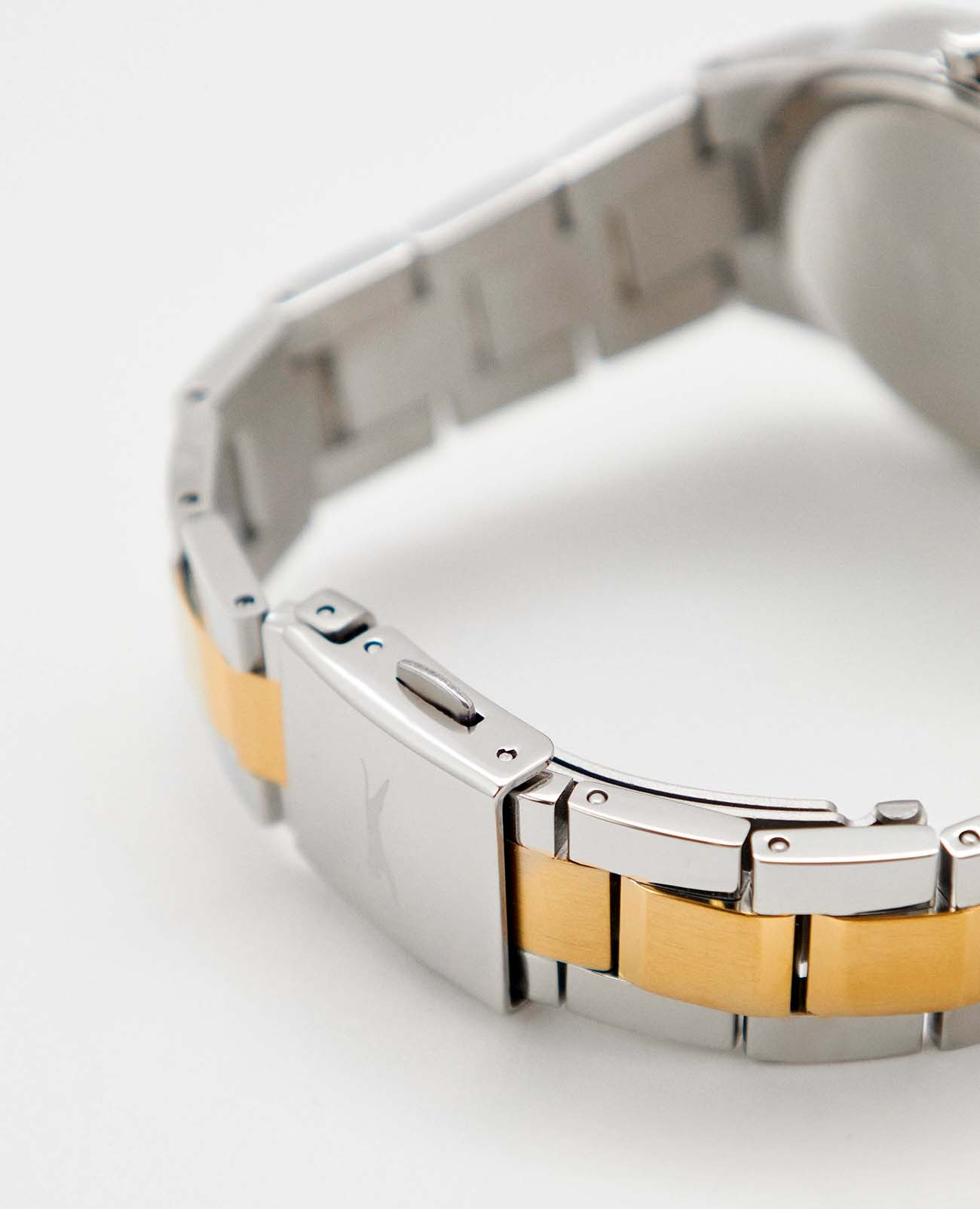Женские наручные часы Slazenger SL.09.2075.3.03 сочетают в себе элегантный дизайн и функциональность. Модель обладает круглым корпусом диаметром 34 мм, изготовленным из суперметалла, что обеспечивает высокую устойчивость к внешним воздействиям. Браслет выполнен из того же материала с частичным IP-покрытиемIP-покрытиеМетод ионного напыления. Демонстрирует повышенную устойчивость к истиранию, окислению и химическим веществам. Под воздействием высокого давления и температуры около 1500°C молекулы металла надёжно соединяются с частицами корпуса часов. на раскладной застежкойРаскладной замокДанный вариант застежки используется только на часах с металлическим браслетом. Отличительная особенность такого крепления в том, что длина браслета становится универсальной и вы можете самостоятельно отрегулировать нужный вам размер – застежка просто двигается по браслету часов., гарантирующем комфортное ношение и безопасность. Для защиты используется минеральное стеклоМинеральное стеклоМинеральное стекло представляет собой искусственно выращенный минерал кварца. Такое стекло отличается особой устойчивостью к повреждениям и царапинам. Уступает по некоторым качествам сапфировому стеклу., обеспечивающее прочную защиту от царапин. Часы работают на кварцевом механизме, что гарантирует точное время без необходимости подзаводки. Водонепроницаемость достигает 3 атмосфер (WR30), что позволяет использовать их при контакте с брызгами воды, однако не рекомендуется для плавания или дайвинга.