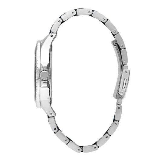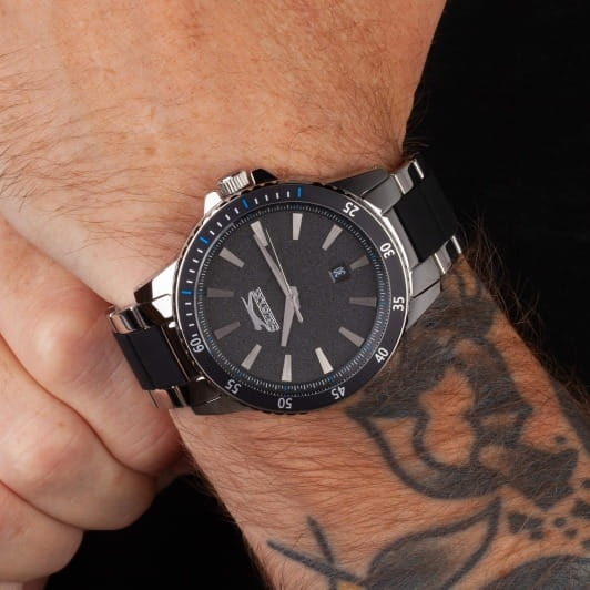 Часы Slazenger SL.09.2219.1.01 представляют собой стильное и функциональное аксессуарное решение для современных мужчин. Этот английский бренд предлагает кварцевый механизм, обеспечивающий точность хода и надежность в использовании. Корпус из металла и минеральное стеклоМинеральное стеклоМинеральное стекло представляет собой искусственно выращенный минерал кварца. Такое стекло отличается особой устойчивостью к повреждениям и царапинам. Уступает по некоторым качествам сапфировому стеклу. придают часам прочность и износостойкость, а водозащита уровня WR 30 позволяет не беспокоиться о случайных брызгах и дождевых каплях. БезельБезельВнешний ободок, закрепляющий стекло. В спортивных часах так называется поворотное кольцо с делениями на циферблате, выполняет роль таймера – замеряет отрезки времени на шкале. Неподвижный безель – элемент декора. Однонаправленно вращающийся безель на дайверских часах позволяет фиксировать моменты погружения и выныривания на поверхность. с черным IP-покрытиемIP-покрытиеМетод ионного напыления. Демонстрирует повышенную устойчивость к истиранию, окислению и химическим веществам. Под воздействием высокого давления и температуры около 1500°C молекулы металла надёжно соединяются с частицами корпуса часов. придаёт аксессуару современный вид и дополнительную прочность. Металлический браслет с комбинированными элементами и черными силиконовыми вставками обеспечивает комфортное ношение и надежную фиксацию на запястье, а раскладная застёжкаРаскладная застёжкаТакой тип застёжки используется только на браслетах из металла. Она никогда не раскрывается полностью, происходит разделение на 2 и более частей. Раскладывающая застёжка снизит вероятность потери часов к минимуму. облегчает процесс надевания. Диаметр корпуса составляет 45 мм, а толщина — 12 мм, что делает модель выразительной и заметной на руке, при этом она сохраняет элегантность и изысканность. На черном циферблате присутствует окошко даты, что добавляет практичности в повседневное использование. Заводная головка оснащена защитой, обеспечивая дополнительную долговечность. Вес часов составляет 148 грамм, что делает их достаточно легкими для комфортного ношения в течение всего дня.