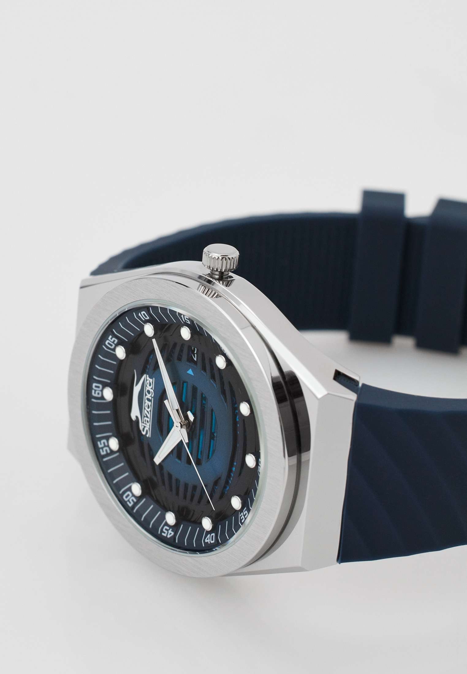 Стильные наручные часы Slazenger SL.09.2221.1.03 сочетают современный дизайн и надежность, идеально подходя для активного образа жизни. Корпус диаметром 44 мм изготовлен из прочного металла и дополнен устойчивым к царапинам минеральным стекломМинеральное стеклоМинеральное стекло представляет собой искусственно выращенный минерал кварца. Такое стекло отличается особой устойчивостью к повреждениям и царапинам. Уступает по некоторым качествам сапфировому стеклу.. Синий ремешок из мягкого силикона удобно сидит на запястье и фиксируется классической застежкой. Кварцевый механизм обеспечивает точность хода, а водозащита уровня WR 50 позволяет не беспокоиться о воздействии влаги в повседневных ситуациях. Модель оснащена функцией отображения даты в отдельном окошке. Стрелки снабжены люминесцентным покрытиемЛюминесцентное покрытиеПозволяет считывать показания времени в темноте. Производители наносят на стрелки, часовые индексы, безель или поверхность циферблата светонакопительный состав, дающий холодное свечение., что позволяет легко считывать время в темноте. Часы весят всего 82 грамма, что делает их легкими и комфортными для ежедневного ношения Эти часы станут отличным выбором для тех, кто ценит качество, практичность и современный стиль.