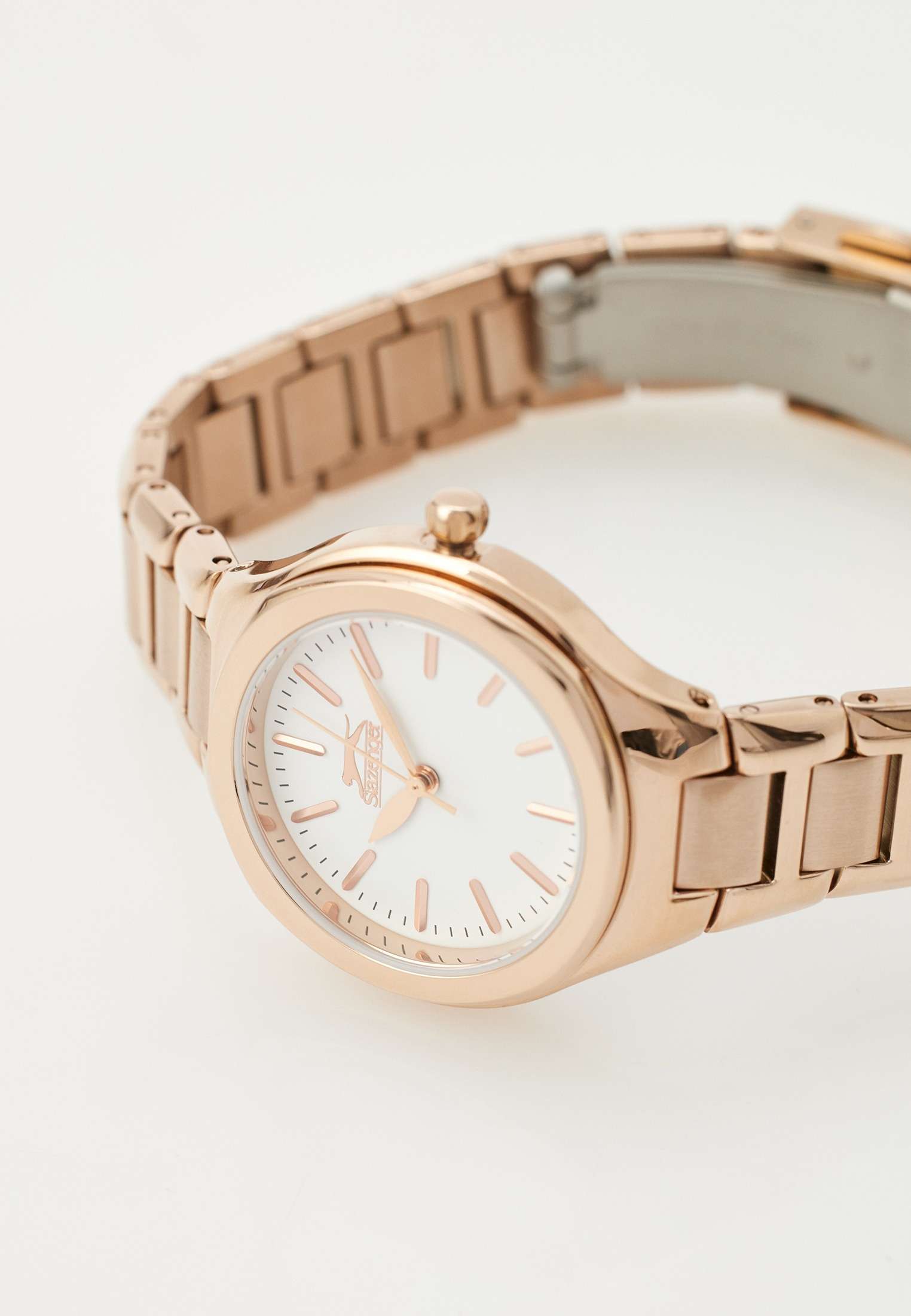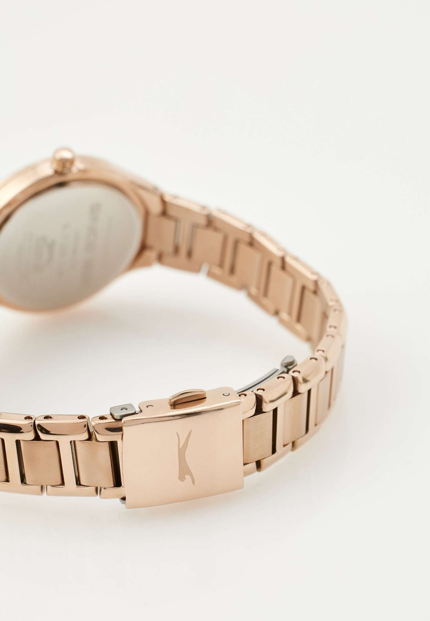 Часы Slazenger SL.09.2254.3.04 — это стильный и надежный аксессуар, который подчеркнет ваш индивидуальный образ. Корпус и браслет выполнены из инновационного суперметалла с изящным розово-золотистым IP-покрытиемIP-покрытиеМетод ионного напыления. Демонстрирует повышенную устойчивость к истиранию, окислению и химическим веществам. Под воздействием высокого давления и температуры около 1500°C молекулы металла надёжно соединяются с частицами корпуса часов., обладающего особой прочностью и долговечностью благодаря специальной технологии покрытия. Модель оснащена точным кварцевым механизмом, который обеспечивает стабильную работу и не требует ежедневного завода. Под прочным минеральным стекломМинеральное стеклоМинеральное стекло представляет собой искусственно выращенный минерал кварца. Такое стекло отличается особой устойчивостью к повреждениям и царапинам. Уступает по некоторым качествам сапфировому стеклу. расположен лаконичный перламутровый циферблат, придающий часам элегантный и современный вид. Стальной браслет с раскладной застёжкойРаскладная застёжкаТакой тип застёжки используется только на браслетах из металла. Она никогда не раскрывается полностью, происходит разделение на 2 и более частей. Раскладывающая застёжка снизит вероятность потери часов к минимуму. обеспечивает комфортную посадку. Диаметр корпуса составляет 32 мм, толщина — 8 мм, что делает часы аккуратными и удобными для повседневного ношения. Класс водозащиты 3 атмосферы защищает механизм от случайных брызг и капель дождя.