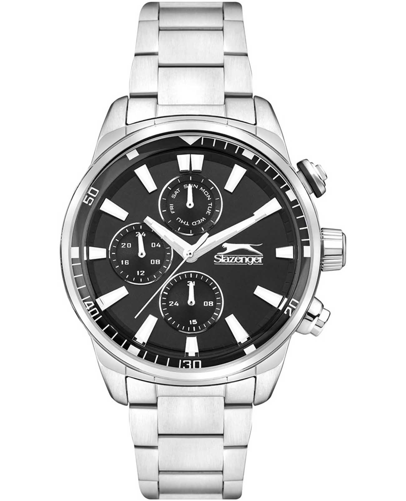 Часы Slazenger SL.09.2272.2.01 – это стильный аксессуар, сочетающий в себе современный дизайн и продуманную функциональность. Модель оснащена точным кварцевым механизмом, который гарантирует стабильную работу и легкость в использовании. Корпус и браслет выполнены из суперметалла — инновационного сплава на основе меди с пониженным содержанием цинка и никеля, обладающего высокой прочностью и устойчивостью к износу благодаря особой технологии покрытия. Элегантный чёрный циферблат защищён надёжным минеральным стекломМинеральное стеклоМинеральное стекло представляет собой искусственно выращенный минерал кварца. Такое стекло отличается особой устойчивостью к повреждениям и царапинам. Уступает по некоторым качествам сапфировому стеклу., устойчивым к царапинам и повреждениям. На циферблате размещены отдельные индикаторы: 24-часовой указатель времени, а также дополнительные циферблаты для отображения даты и дня недели, что делает модель максимально информативной и удобной в повседневном использовании. Водозащита 5 АТМ (5 бар) надёжно защищает механизм от брызг и дождя, а диаметр корпуса 45 мм и толщина 13 мм обеспечивают солидный внешний вид и комфортную посадку на запястье. Стальной браслет с раскладной застёжкойРаскладная застёжкаТакой тип застёжки используется только на браслетах из металла. Она никогда не раскрывается полностью, происходит разделение на 2 и более частей. Раскладывающая застёжка снизит вероятность потери часов к минимуму. обеспечивает комфортную посадку. Стрелки с люминесцентным покрытиемЛюминесцентное покрытиеПозволяет считывать показания времени в темноте. Производители наносят на стрелки, часовые индексы, безель или поверхность циферблата светонакопительный состав, дающий холодное свечение. удобно подсвечиваются в темноте после зарядки на свету. Часы подойдут как для ежедневного ношения, так и для особых случаев, а универсальный дизайн подчеркнёт индивидуальность и вкус владельца.