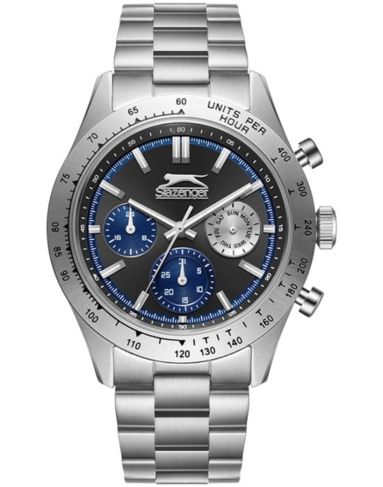 Slazenger SL.09.2358.2.01 — стильные мужские часы, сочетающие современный дизайн и функциональность. Корпус выполнен из суперметалла, а безельБезельВнешний ободок, закрепляющий стекло. В спортивных часах так называется поворотное кольцо с делениями на циферблате, выполняет роль таймера – замеряет отрезки времени на шкале. Неподвижный безель – элемент декора. Однонаправленно вращающийся безель на дайверских часах позволяет фиксировать моменты погружения и выныривания на поверхность. покрыт PVDPVDУльтратонкое покрытие наносится в технике вакуумного напыления, сочетает в себе нитрид титана особой прочности со слоем золота или оксида хрома. Несёт в себе декоративную или защитную функцию.-покрытием, придающим модели современный и элегантный вид. Минеральное стеклоМинеральное стеклоМинеральное стекло представляет собой искусственно выращенный минерал кварца. Такое стекло отличается особой устойчивостью к повреждениям и царапинам. Уступает по некоторым качествам сапфировому стеклу. защищает циферблат от царапин и гарантирует превосходную читаемость. Циферблат с контрастными метками и стрелками обеспечивает отличную видимость в любых условиях. Браслет из суперметалла обеспечивает комфортное ношение и надёжную фиксацию на запястье. Функциональность дополняется индикацией даты, дня недели и 24-часовым форматом времени. Водонепроницаемость 50 метров делает модель устойчивой к случайным брызгам, идеально подходя для повседневного использования.