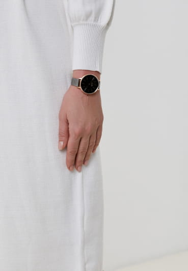 Женские кварцевые часы Slazenger — это элегантный аксессуар с браслетом миланского плетения. Корпус диаметром 38 мм и толщиной 9 мм выполнен из суперметалла с IP-покрытиемIP-покрытиеМетод ионного напыления. Демонстрирует повышенную устойчивость к истиранию, окислению и химическим веществам. Под воздействием высокого давления и температуры около 1500°C молекулы металла надёжно соединяются с частицами корпуса часов.. Циферблат чёрного цвета оформлен индексами и стрелками. Циферблат защищён минеральным стекломМинеральное стеклоМинеральное стекло представляет собой искусственно выращенный минерал кварца. Такое стекло отличается особой устойчивостью к повреждениям и царапинам. Уступает по некоторым качествам сапфировому стеклу.. Механизм — кварцевый калибр Miyota 2035. Часы оснащены браслетом из суперметалла миланского плетения с раскладной застёжкойРаскладная застёжкаТакой тип застёжки используется только на браслетах из металла. Она никогда не раскрывается полностью, происходит разделение на 2 и более частей. Раскладывающая застёжка снизит вероятность потери часов к минимуму.. Водонепроницаемость 30 м позволяет использовать часы в повседневных условиях. Идеальный выбор для тех, кто ценит стиль и качество.