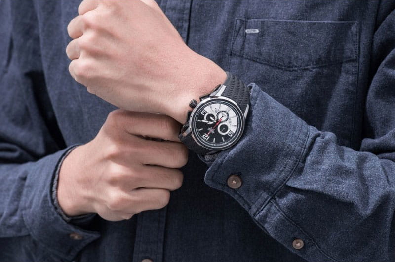 Внутри установлен японский кварцевый механизм Miyota OS20 c хронографомХронографФункция позволяет измерять отрезки времени с особой точностью: часы, минуты, секунды. Верным признаком хронографа является наличие на циферблате 3 дополнительных окошек-счётчиков., обеспечивающий высокую точность хода.