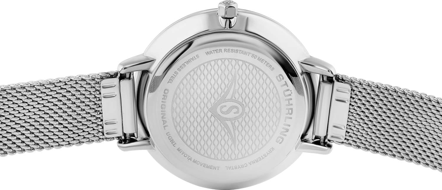 Stuhrling 3946.2 — элегантные женские часы, объединяющие строгую классику и современную функциональность. Корпус из нержавеющей стали создают ощущение монолитной надёжности, а глубокий циферблат украшенный кристаллом придаёт модели выразительность и характер. Стальной браслет миланского плетения на раскладном замкеРаскладной замокДанный вариант застежки используется только на часах с металлическим браслетом. Отличительная особенность такого крепления в том, что длина браслета становится универсальной и вы можете самостоятельно отрегулировать нужный вам размер – застежка просто двигается по браслету часов.. Прочное стекло KrysternaKrysternaKrysterna — инновационное стекло для наручных часов. Благодаря уникальной структуре, Krysterna объединяет ключевые преимущества двух материалов: твердость сапфира, защищающую от царапин, и гибкость минерального стекла, обеспечивающую устойчивость к деформациям. Такая комбинация делает его идеальным решением для часов, подверженных экстремальным нагрузкам, сохраняя при этом оптическую прозрачность. защищает циферблат от царапин, а надёжный кварцевый механизм гарантирует стабильную точность. Stuhrling — выбор уверенной девушки, ценящей сочетание функциональности, лаконичного дизайна и безупречной отделки.