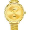 Stuhrling 3946.3 — элегантные женские часы, объединяющие строгую классику и современную функциональность. Корпус из нержавеющей стали с PVD-покрытиемPVDУльтратонкое покрытие наносится в технике вакуумного напыления, сочетает в себе нитрид титана особой прочности со слоем золота или оксида хрома. Несёт в себе декоративную или защитную функцию. создают ощущение монолитной надёжности, а глубокий циферблат украшенный кристаллом придаёт модели выразительность и характер. Стальной браслет миланского плетения с PVD-покрытиемPVDУльтратонкое покрытие наносится в технике вакуумного напыления, сочетает в себе нитрид титана особой прочности со слоем золота или оксида хрома. Несёт в себе декоративную или защитную функцию. на раскладном замкеРаскладной замокДанный вариант застежки используется только на часах с металлическим браслетом. Отличительная особенность такого крепления в том, что длина браслета становится универсальной и вы можете самостоятельно отрегулировать нужный вам размер – застежка просто двигается по браслету часов.. Прочное стекло KrysternaKrysternaKrysterna — инновационное стекло для наручных часов. Благодаря уникальной структуре, Krysterna объединяет ключевые преимущества двух материалов: твердость сапфира, защищающую от царапин, и гибкость минерального стекла, обеспечивающую устойчивость к деформациям. Такая комбинация делает его идеальным решением для часов, подверженных экстремальным нагрузкам, сохраняя при этом оптическую прозрачность. защищает циферблат от царапин, а надёжный кварцевый механизм гарантирует стабильную точность. Stuhrling — выбор уверенной девушки, ценящей сочетание функциональности, лаконичного дизайна и безупречной отделки.