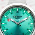 Часы Swatch SB07S100G — это стильный и современный аксессуар для тех, кто ценит лёгкость и комфорт. Часы идеально подойдут как для мужчин, так и для женщин. Эти большие часы из нержавеющей стали имеют циферблат бирюзового цвета c радиальной полировкой, черным принтом и серыми светящимися в темноте стрелками благодаря люминесцентному покрытиюЛюминесцентное покрытиеПозволяет считывать показания времени в темноте. Производители наносят на стрелки, часовые индексы, безель или поверхность циферблата светонакопительный состав, дающий холодное свечение.. Дизайн часов дополняют регулируемый браслет с застёжкой «бабочка»Застёжка "бабочка"Такой вид застёжки дополняется предохранителями, помогающими избежать случайного раскрытия браслета. Обладают изящным исполнением. и корпус из нержавеющей стали с пескоструйной обработкой. Водозащита 30 метров делает часы практичными для повседневного использования. Эти часы подойдут для повседневного ношения и станут ярким акцентом в вашем наряде.