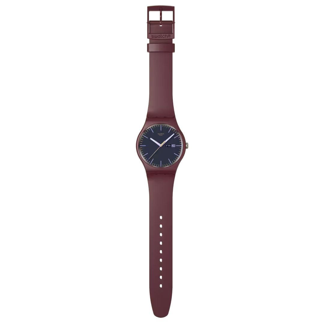 Часы Swatch SO29R707 — стильный и надежный аксессуар. У них темно-коричневый циферблат со светло-фиолетовыми индексами, светло-коричневой минутной шкалой и окном даты и дня недели на 3 часах. Часовая и минутная стрелки имеют люминесцентное покрытиеЛюминесцентное покрытиеПозволяет считывать показания времени в темноте. Производители наносят на стрелки, часовые индексы, безель или поверхность циферблата светонакопительный состав, дающий холодное свечение., с эффектом свечения в темноте, а секундная стрелка цвета розового золота, под стеклом из биоматериала. Матовый бордовый корпус из биоматериала в сочетании с ремешком, петлей и пряжкой также из биопластика завершает дизайн часов. Эти часы водонепроницаемы до 30 метров, что позволяет не беспокоиться о случайных брызгах или дождевых каплях. Swatch SO29R707 — это идеальный выбор для тех, кто ценит сочетание стиля, комфорта и функциональности в одном аксессуаре.