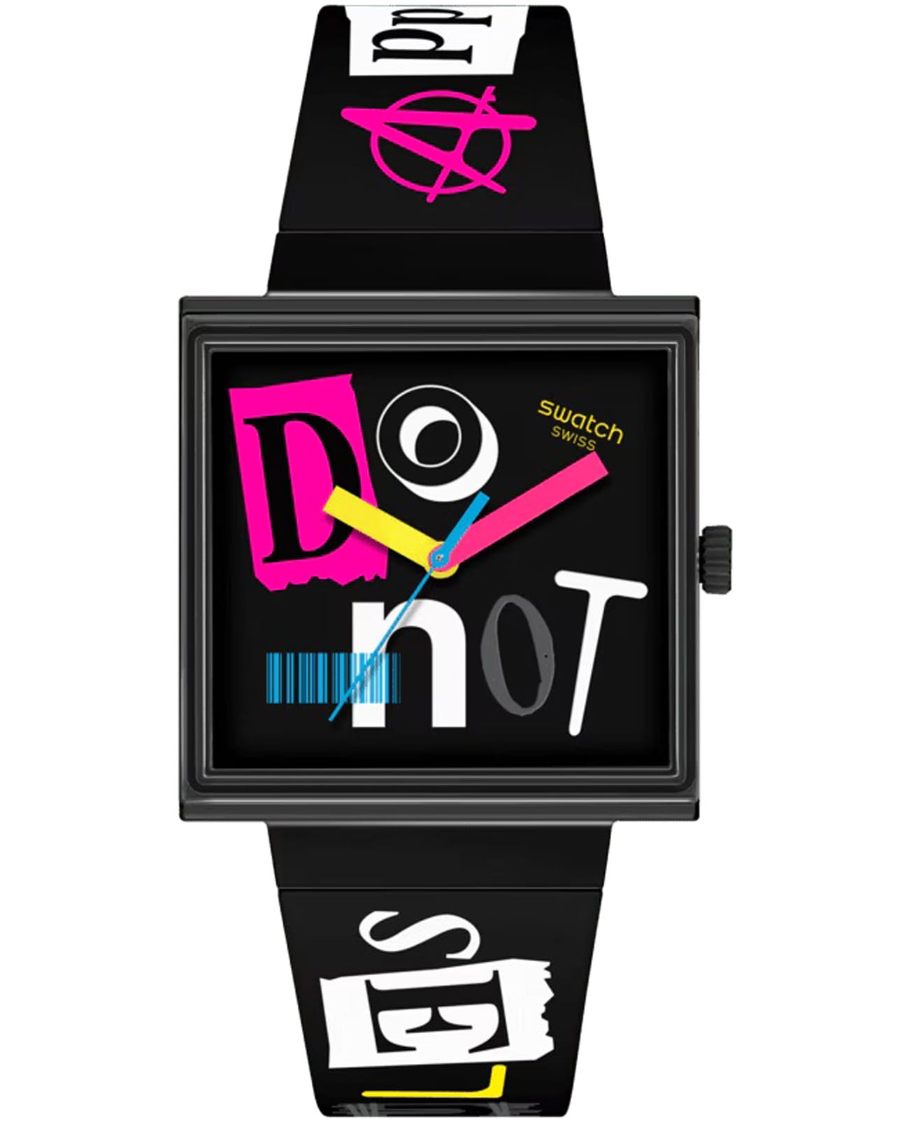 Мужские наручные часы Swatch PIERCED EDGE SO34B100 — это стильный и современный аксессуар для тех, кто ценит лёгкость и комфорт. часовая, розовая минутная и синяя секундная стрелки. Черный циферблат пересекает надпись: «Rules do not apply» («Правила ни к чему»). Необычный квадратный корпус выполнен из биокерамики, размером 41.8 мм и толщиной 10.5 мм, что обеспечивает долговечность и утончённый внешний вид. Циферблат защищён органическим стеклом, устойчивым к повреждениям. Модель оснащена кварцевым механизмом, обеспечивающим высокую точность хода. Силиконовый ремешок на стандартной застёжке гармонично дополняет корпус и обеспечивает комфортное ношение. Водозащита 30 метров позволит защитить корпус от случайных брызг или капель дождя. Эти часы подойдут для повседневного ношения и станут ярким акцентом в вашем наряде.