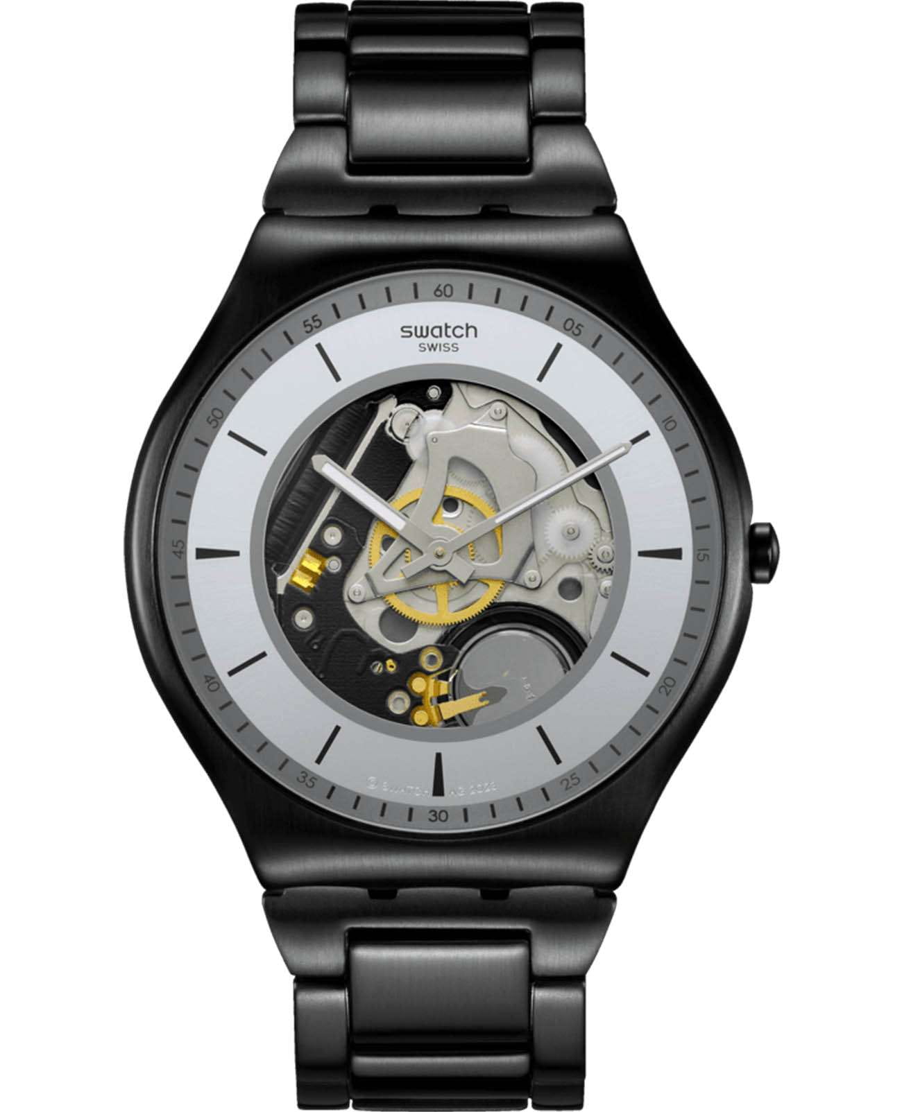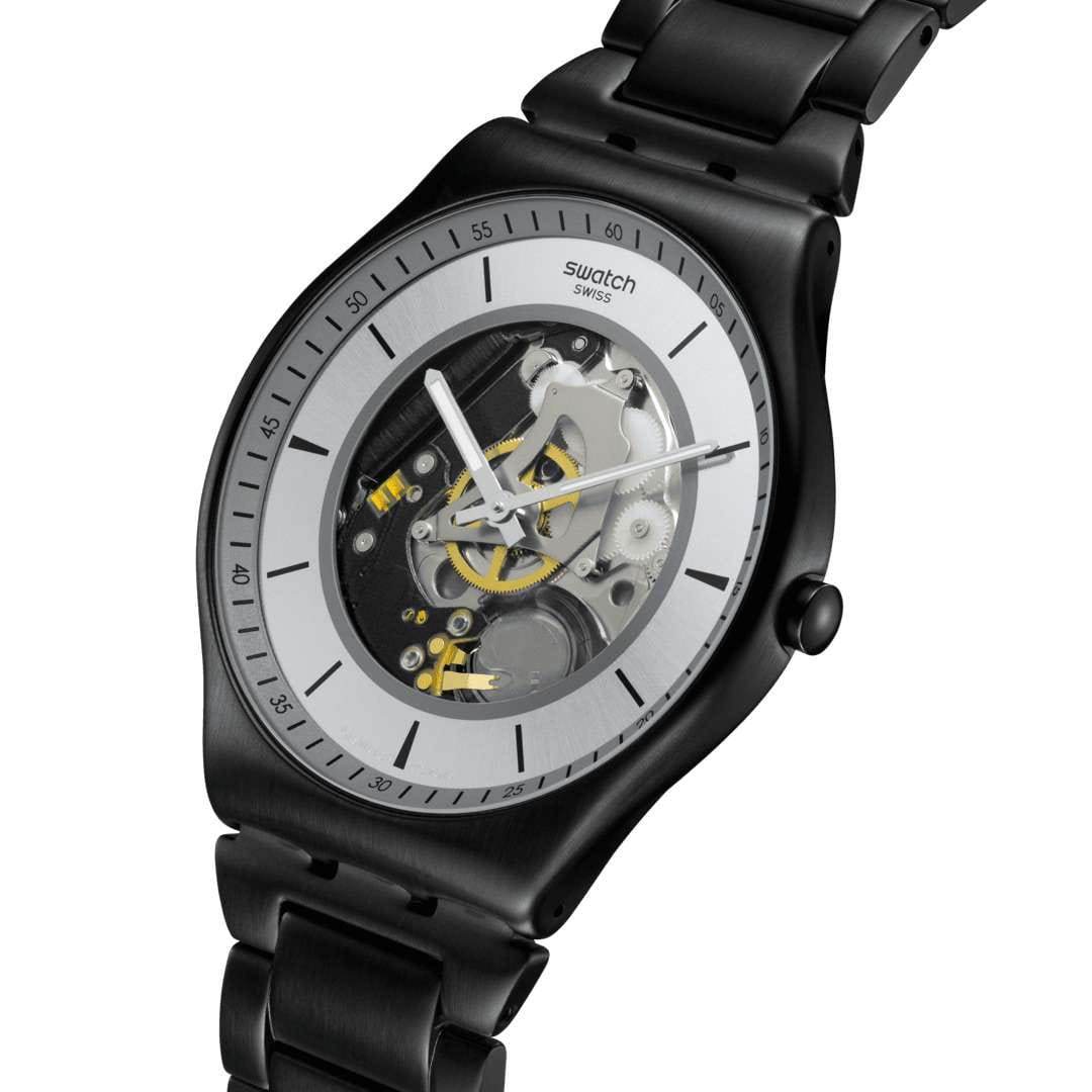 Часы Swatch SS07B113G — это стильный и современный аксессуар для тех, кто ценит лёгкость и комфорт. Часы идеально подойдут как для мужчин, так и для женщин. Особенностью этих ультратонких часов из матированной нержавеющей стали с черным PVDPVDУльтратонкое покрытие наносится в технике вакуумного напыления, сочетает в себе нитрид титана особой прочности со слоем золота или оксида хрома. Несёт в себе декоративную или защитную функцию. покрытием являются открытый серебристый циферблат с радиальной полировкой и черно-серым принтом, а также серое кольцо с черным принтом. Регулируемый браслет из матовой нержавеющей стали с черным PVDPVDУльтратонкое покрытие наносится в технике вакуумного напыления, сочетает в себе нитрид титана особой прочности со слоем золота или оксида хрома. Несёт в себе декоративную или защитную функцию. покрытием, застегивающийся застёжкой «бабочка»Застёжка "бабочка"Такой вид застёжки дополняется предохранителями, помогающими избежать случайного раскрытия браслета. Обладают изящным исполнением. , изящно довершает модель. Часы с  минеральным стекломМинеральное стеклоМинеральное стекло представляет собой искусственно выращенный минерал кварца. Такое стекло отличается особой устойчивостью к повреждениям и царапинам. Уступает по некоторым качествам сапфировому стеклу. имеют черные индексы и серебристые стрелки с люминесцентным покрытиемЛюминесцентное покрытиеПозволяет считывать показания времени в темноте. Производители наносят на стрелки, часовые индексы, безель или поверхность циферблата светонакопительный состав, дающий холодное свечение. на циферблате. Водозащита 30 метров делает часы практичными для повседневного использования. Эти часы подойдут для повседневного ношения и станут ярким акцентом в вашем наряде.