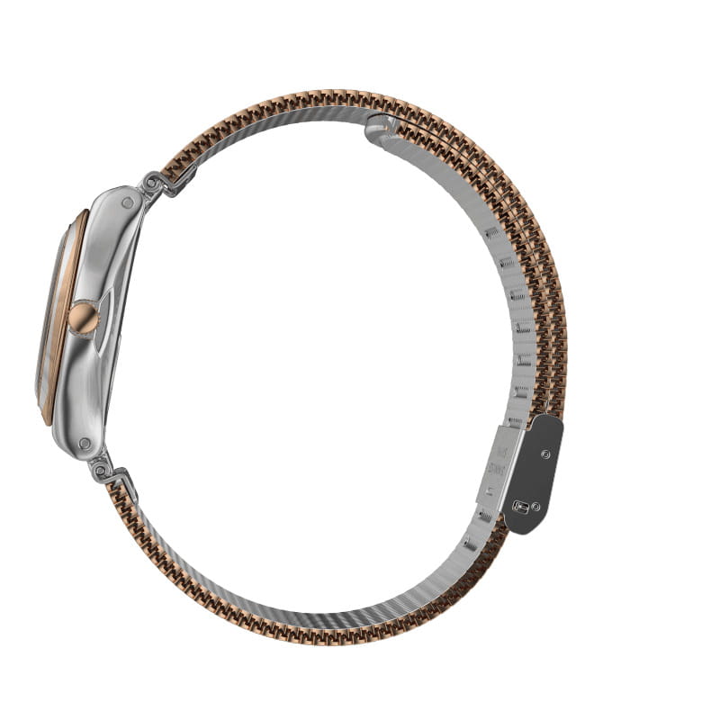 Часы Swatch YSS327M — это стильный и современный аксессуар для тех, кто ценит лёгкость и комфорт. Впечатляющая современная модель, выполненная из нержавеющей стали. Циферблат с радиальной полировкой смотрится очень изысканно в сочетании с полированным корпусом и миланским браслетом с раскладным замкомРаскладной замокДанный вариант застежки используется только на часах с металлическим браслетом. Отличительная особенность такого крепления в том, что длина браслета становится универсальной и вы можете самостоятельно отрегулировать нужный вам размер – застежка просто двигается по браслету часов.. БезельБезельВнешний ободок, закрепляющий стекло. В спортивных часах так называется поворотное кольцо с делениями на циферблате, выполняет роль таймера – замеряет отрезки времени на шкале. Неподвижный безель – элемент декора. Однонаправленно вращающийся безель на дайверских часах позволяет фиксировать моменты погружения и выныривания на поверхность. и браслет украшены элементами с PVDPVDУльтратонкое покрытие наносится в технике вакуумного напыления, сочетает в себе нитрид титана особой прочности со слоем золота или оксида хрома. Несёт в себе декоративную или защитную функцию. покрытием оттенка розового золота, которые придают часам особую элегантность. Водозащита 30 метров делает часы практичными для повседневного использования. Эти часы подойдут для повседневного ношения и станут ярким акцентом в вашем наряде.