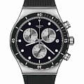 Часы Swatch YVS487 — это стильный и современный аксессуар для тех, кто ценит лёгкость и комфорт. Эта стильная модель часов из нержавеющей стали дополнена черным каучуковым ремешкомс фактурным верхом и матовой застежкой из нержавеющей стали. Но изюминка этих часов — матовый черный циферблат с серебристыми счетчиками хронографаХронографФункция позволяет измерять отрезки времени с особой точностью: часы, минуты, секунды. Верным признаком хронографа является наличие на циферблате 3 дополнительных окошек-счётчиков. и серебристыми индексами, и стрелками с люминесцентным покрытиемЛюминесцентное покрытиеПозволяет считывать показания времени в темноте. Производители наносят на стрелки, часовые индексы, безель или поверхность циферблата светонакопительный состав, дающий холодное свечение.. Завершают образ индикатор даты в положении «3 часа» на циферблате, а также серебристые цифры и индексы на безелеБезельВнешний ободок, закрепляющий стекло. В спортивных часах так называется поворотное кольцо с делениями на циферблате, выполняет роль таймера – замеряет отрезки времени на шкале. Неподвижный безель – элемент декора. Однонаправленно вращающийся безель на дайверских часах позволяет фиксировать моменты погружения и выныривания на поверхность. из нержавеющей стали с черным PVDPVDУльтратонкое покрытие наносится в технике вакуумного напыления, сочетает в себе нитрид титана особой прочности со слоем золота или оксида хрома. Несёт в себе декоративную или защитную функцию. покрытием. Водозащита 30 метров делает часы практичными для повседневного использования. Эти часы подойдут для повседневного ношения и станут ярким акцентом в вашем наряде.
