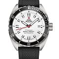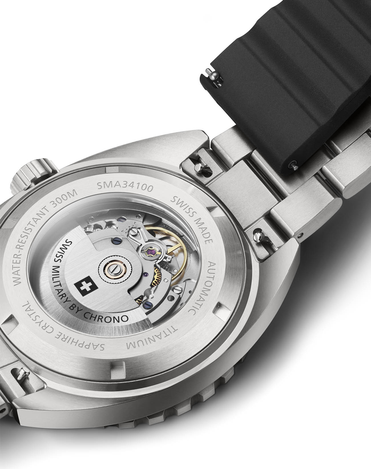 Мужские швейцарские механические часы с автоподзаводом Swiss Military by Chrono Titanium 300 SMA34100.08. Сапфировое стеклоСапфировое стеклоПрочный и надёжный материал из кристалла сапфира синтетического происхождения, характеризующийся особой твёрдостью и устойчивостью к царапинам и повреждениям. устойчивое к появлению царапин, обладающее высокой прозрачностью. Корпус часов изготовлен из титана. Вращающийся безельБезельВнешний ободок, закрепляющий стекло. В спортивных часах так называется поворотное кольцо с делениями на циферблате, выполняет роль таймера – замеряет отрезки времени на шкале. Неподвижный безель – элемент декора. Однонаправленно вращающийся безель на дайверских часах позволяет фиксировать моменты погружения и выныривания на поверхность. из высокотехнологичной керамикиВысокотехнологичная керамикаИнновационный запатентованный Rado материал с гладкой или матовой поверхностью. Керамика за счёт кристаллической структуры обладает повышенной устойчивостью от возникновения царапин. Материал способен принимать температуру тела человека, обеспечивая невероятный комфорт при ношении.. Индикация даты на позиции трех часов. Стрелки и метки с люминесцентной подсветкойЛюминесцентное покрытиеПозволяет считывать показания времени в темноте. Производители наносят на стрелки, часовые индексы, безель или поверхность циферблата светонакопительный состав, дающий холодное свечение.. Класс водозащиты: 300 метров, позволит плавать, нырять и заниматься другими водными видами спорта. Силиконовый браслет на раскладной застёжкеРаскладная застёжкаТакой тип застёжки используется только на браслетах из металла. Она никогда не раскрывается полностью, происходит разделение на 2 и более частей. Раскладывающая застёжка снизит вероятность потери часов к минимуму..